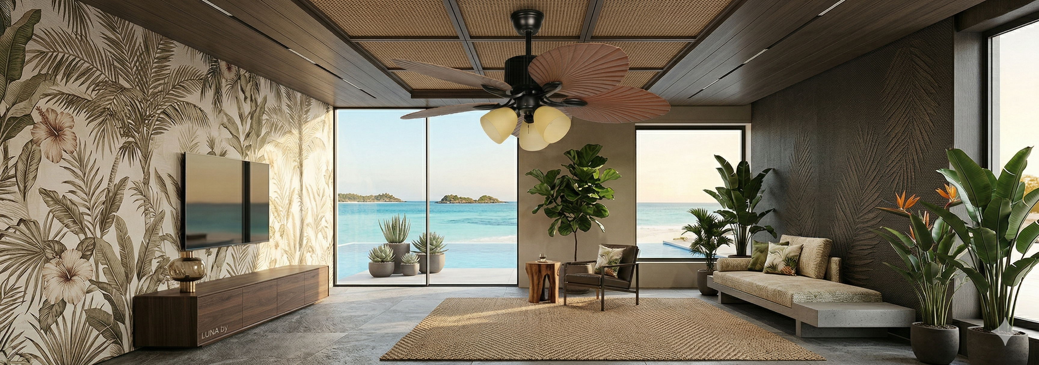 Ideal For: Living rooms, covered outdoor spaces, tropical-themed interiors