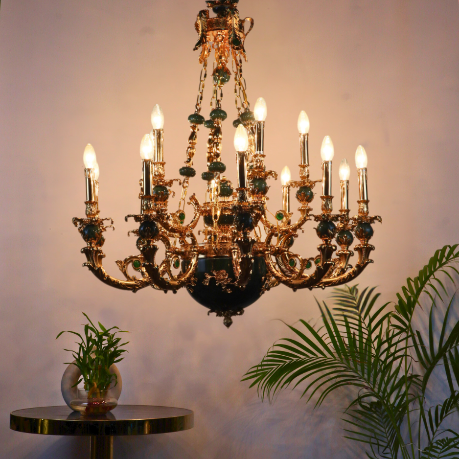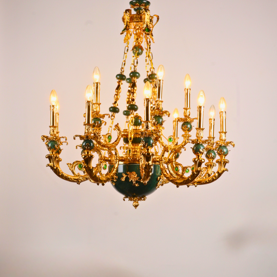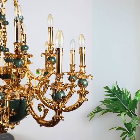 Elevate your grand space with the magnificent MANDALISSE-L Chandelier. This breathtaking fixture combines classic European opulence with rich, luxurious materials, creating a dramatic focal point for any foyer, dining hall, or ballroom.