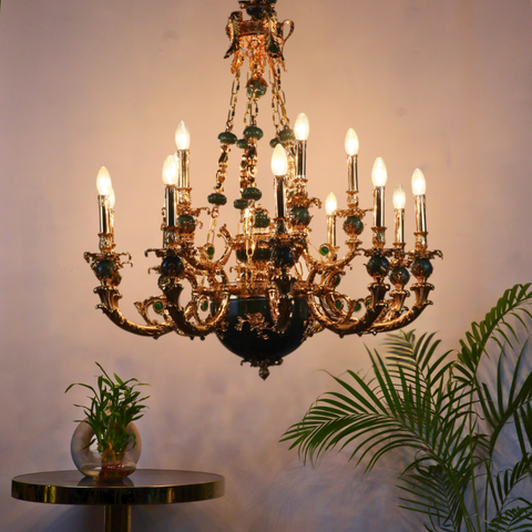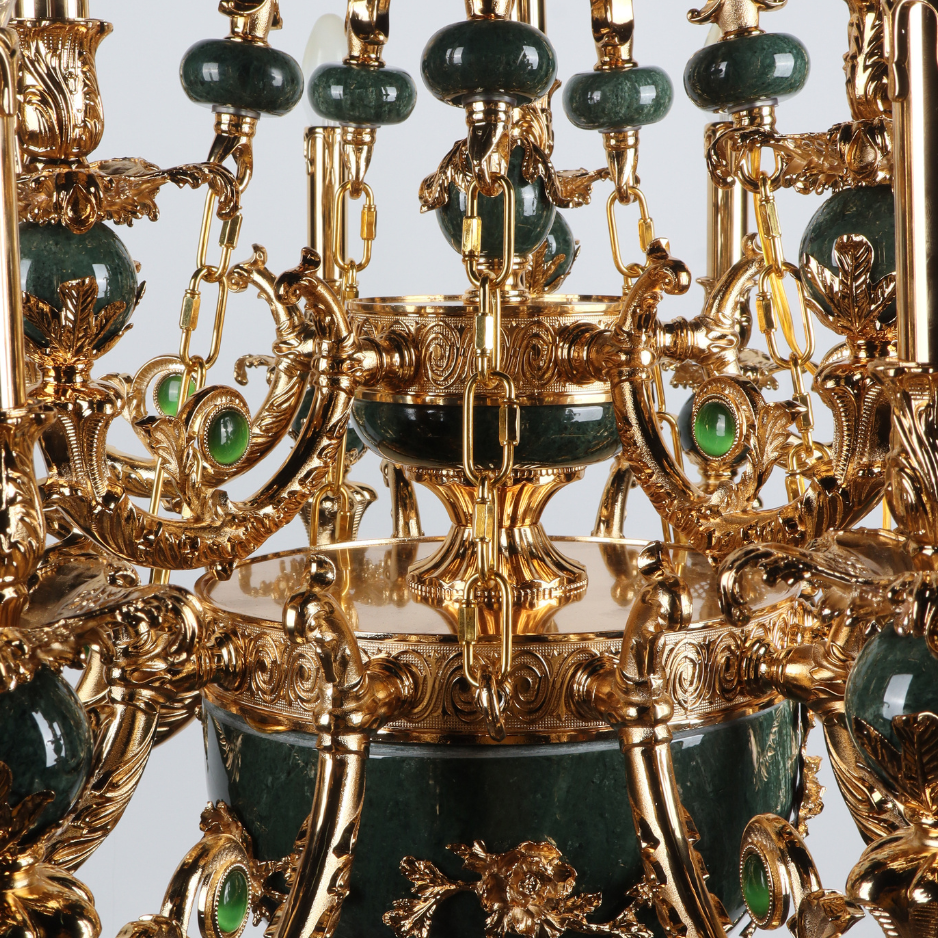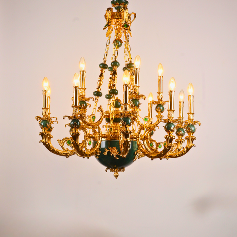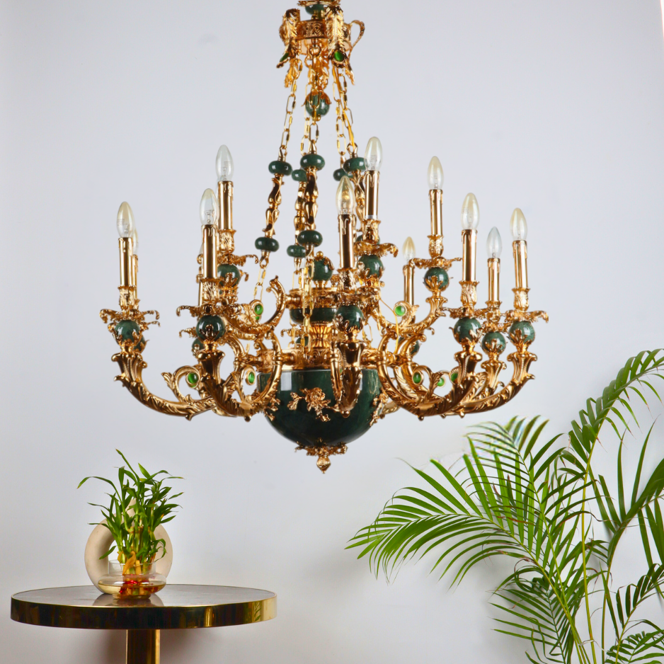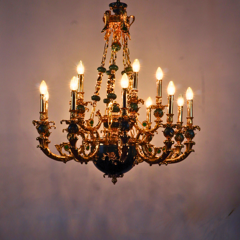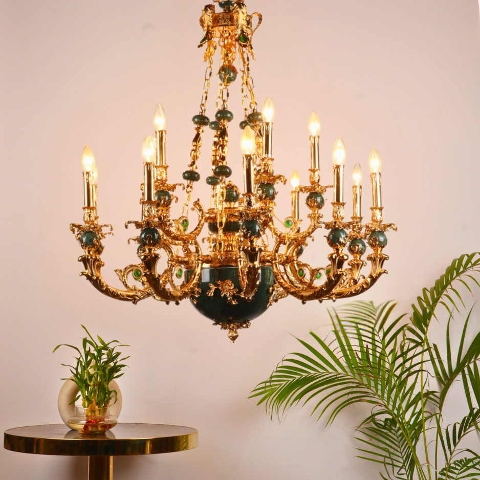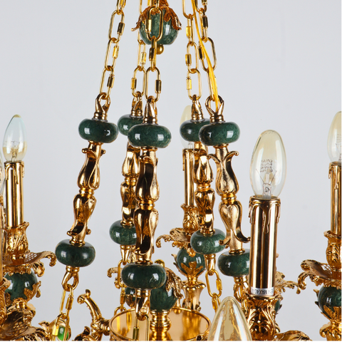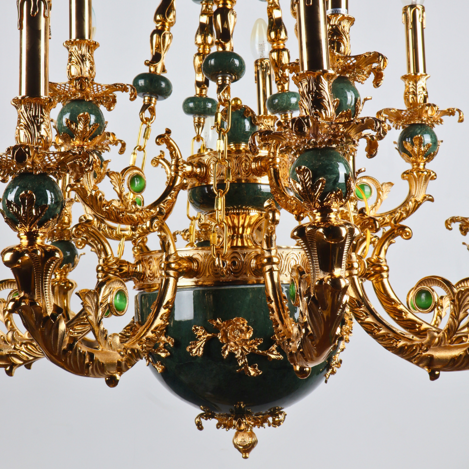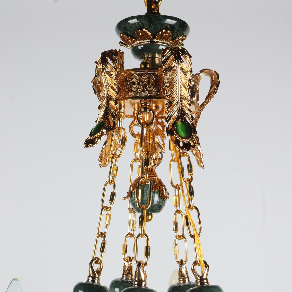 MANDALISSE-L | 15-Light Zinc Die-Casting Chandelier with Green Marble Accents