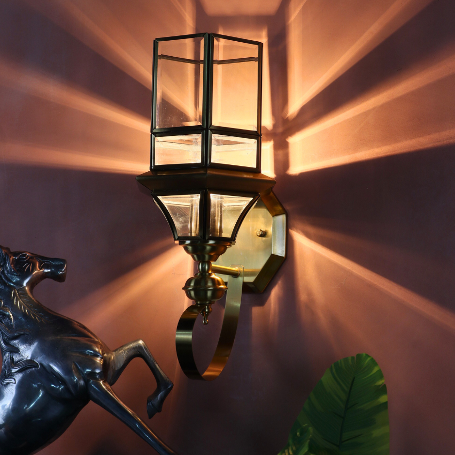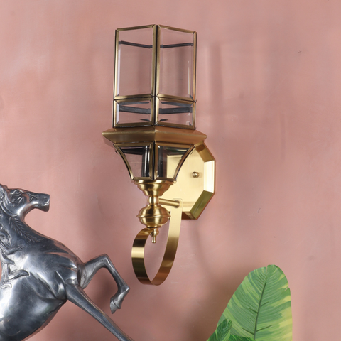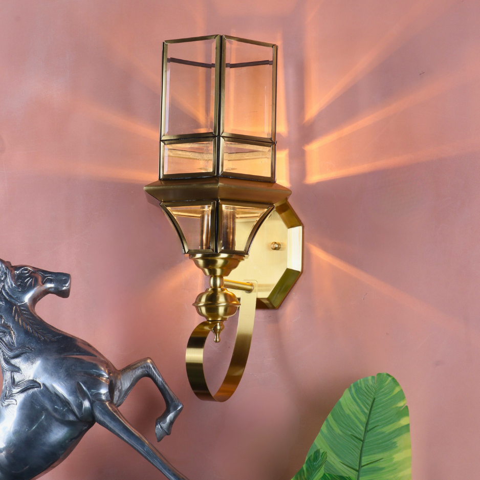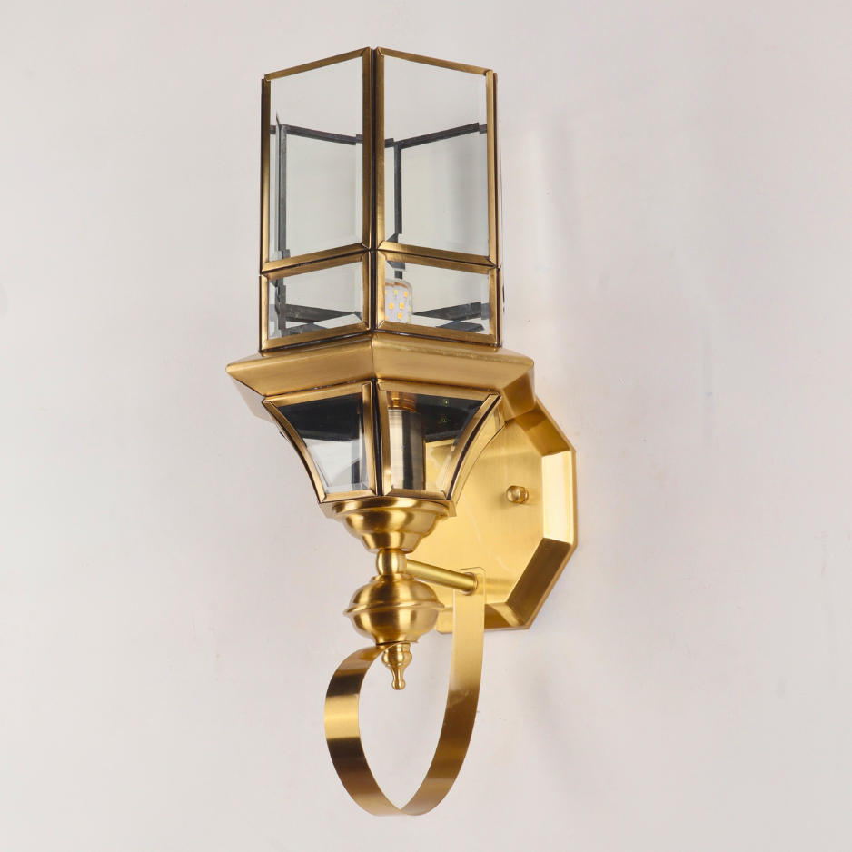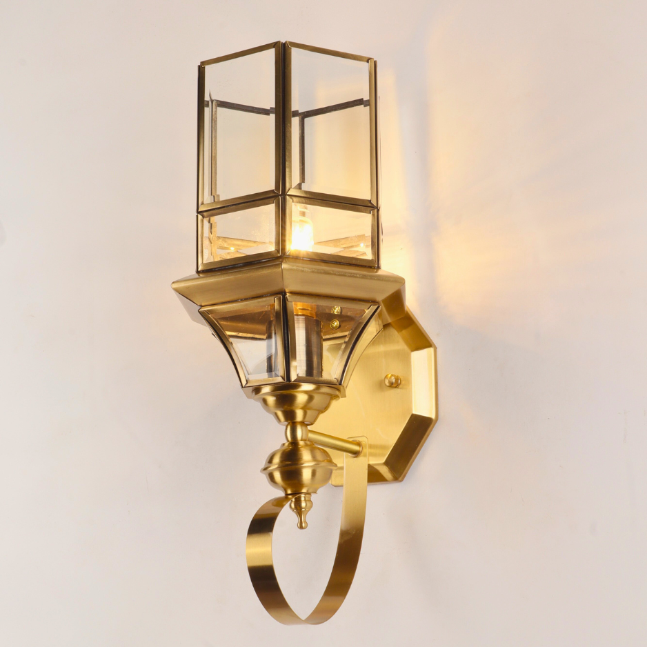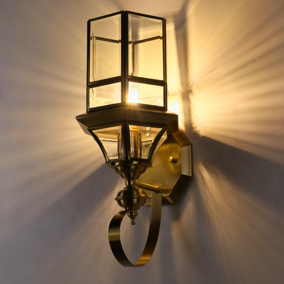 Premium Brass Construction: The fixture, including the curved bracket and octagonal wall plate, is crafted from high-quality Brass, finished with a warm, polished luster that never goes out of style.
