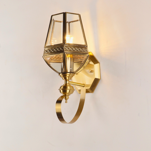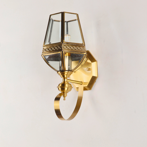 Illuminate your space with the architectural elegance of the OLVESSA Geometric Brass Lantern Wall Sconce. This single-light fixture is designed for those who appreciate a perfect blend of vintage style and modern sophistication.