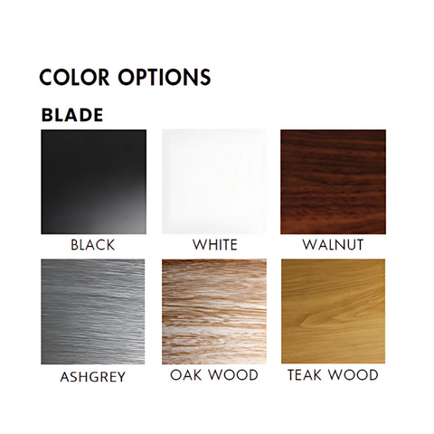 Blade Colour Options: Personalize your fan with your choice of Black, White, Ash Grey, or wood-look finishes like Walnut, Oak Wood, and Teak Wood.