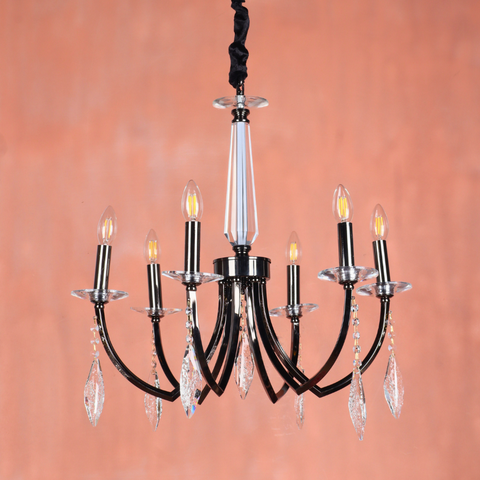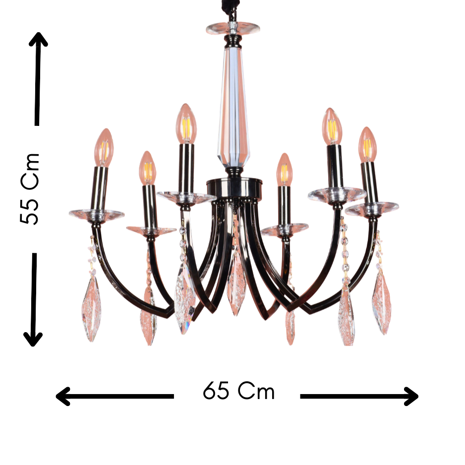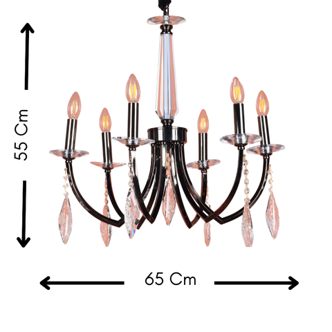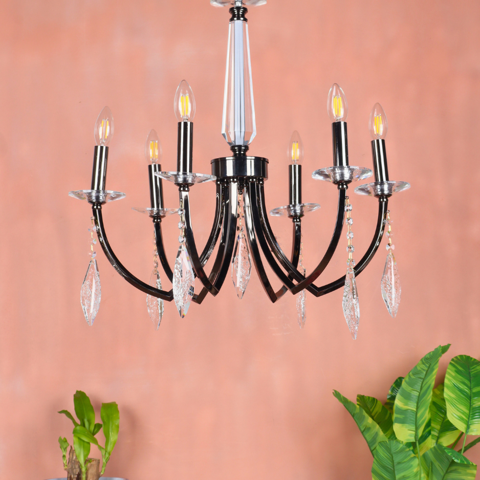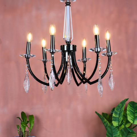 ELNYRA 6-Light Crystal Candelabra Chandelier: Pearl Black Finish E-14
