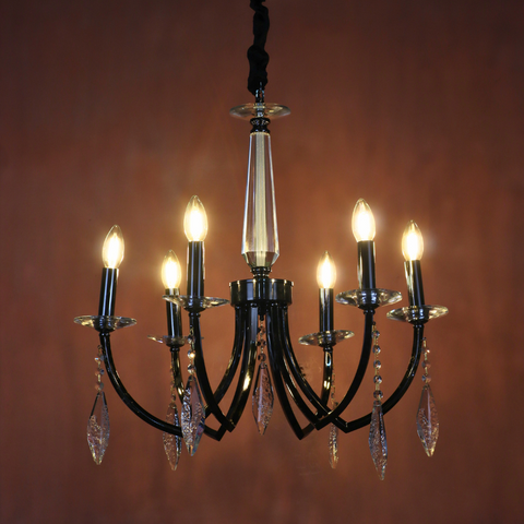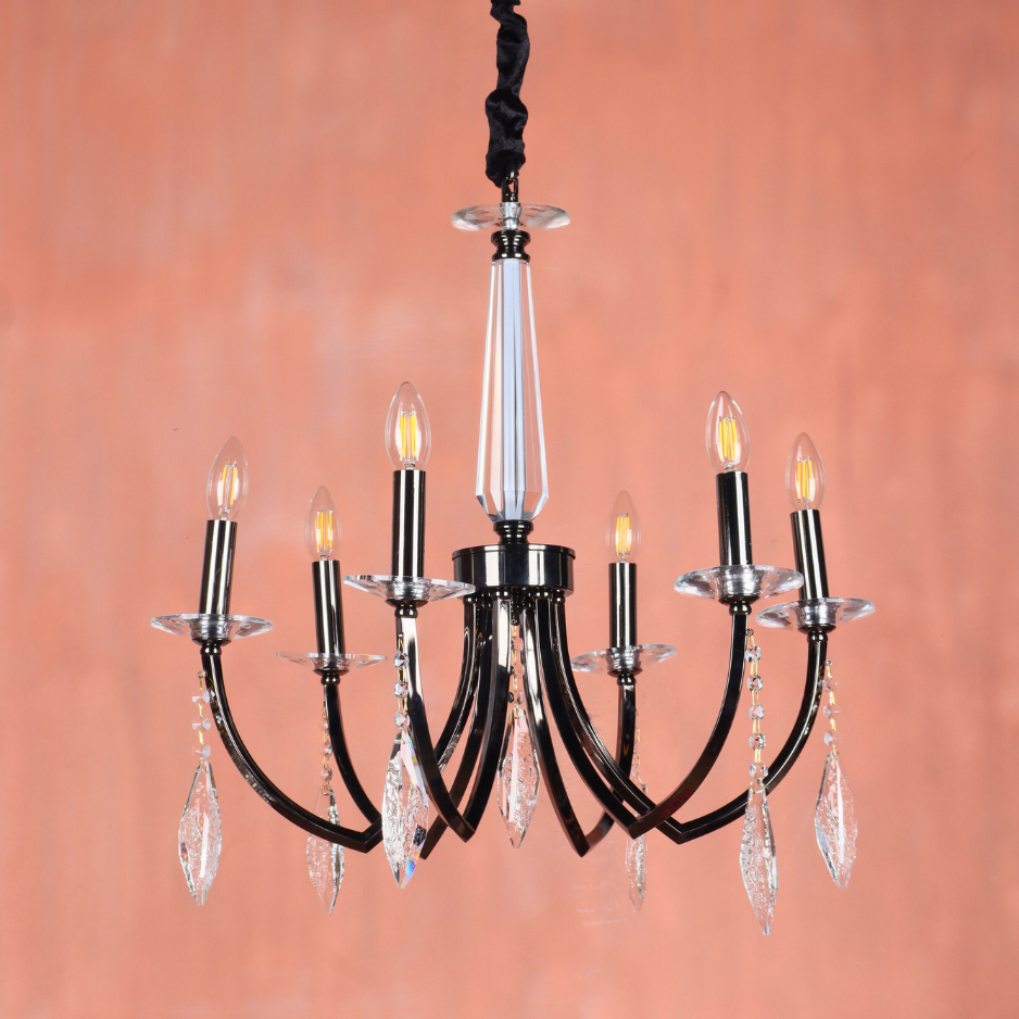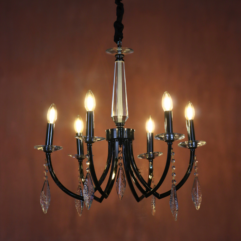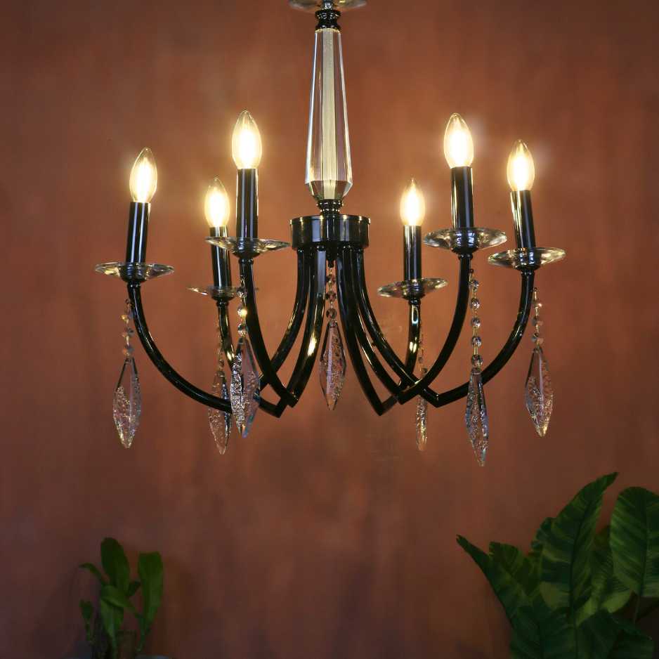 High-Quality Crystal Accents: Features clear, high-quality prisms and bobeches, adding a layer of traditional luxury and refinement over the sleek, modern black finish.