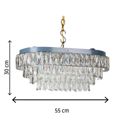 Illuminate your space with the breathtaking LUVIRA 98W Crystal Chandelier, a perfect blend of modern design and dazzling glamour. This exquisite rectangular fixture measures 55cm x 30cm x 27cm and is meticulously crafted to be a stunning centerpiece in any luxury setting.
