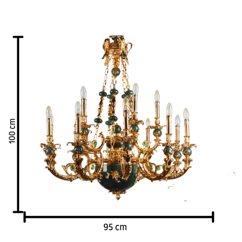 MANDALISSE-L | 15-Light Zinc Die-Casting Chandelier with Green Marble Accents