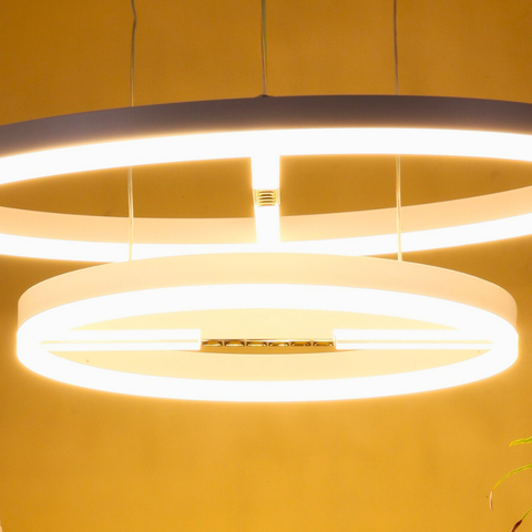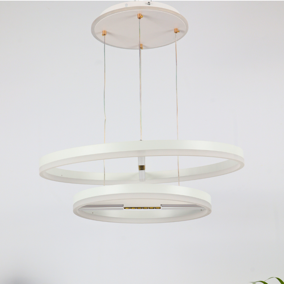 Redefine your interiors with the VORAYNE 160W LED Chandelier, an architectural masterpiece that fuses minimalism with advanced illumination. Designed with dual rings (600mm & 400mm), this pendant light delivers both diffused ambient glow and focused spotlight brilliance, creating a perfect balance between function and aesthetics.