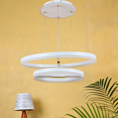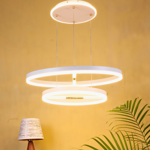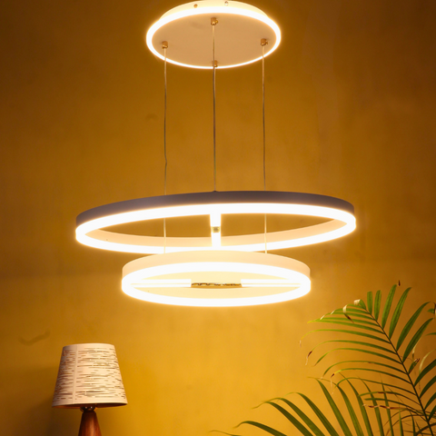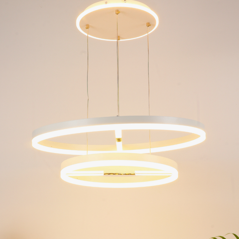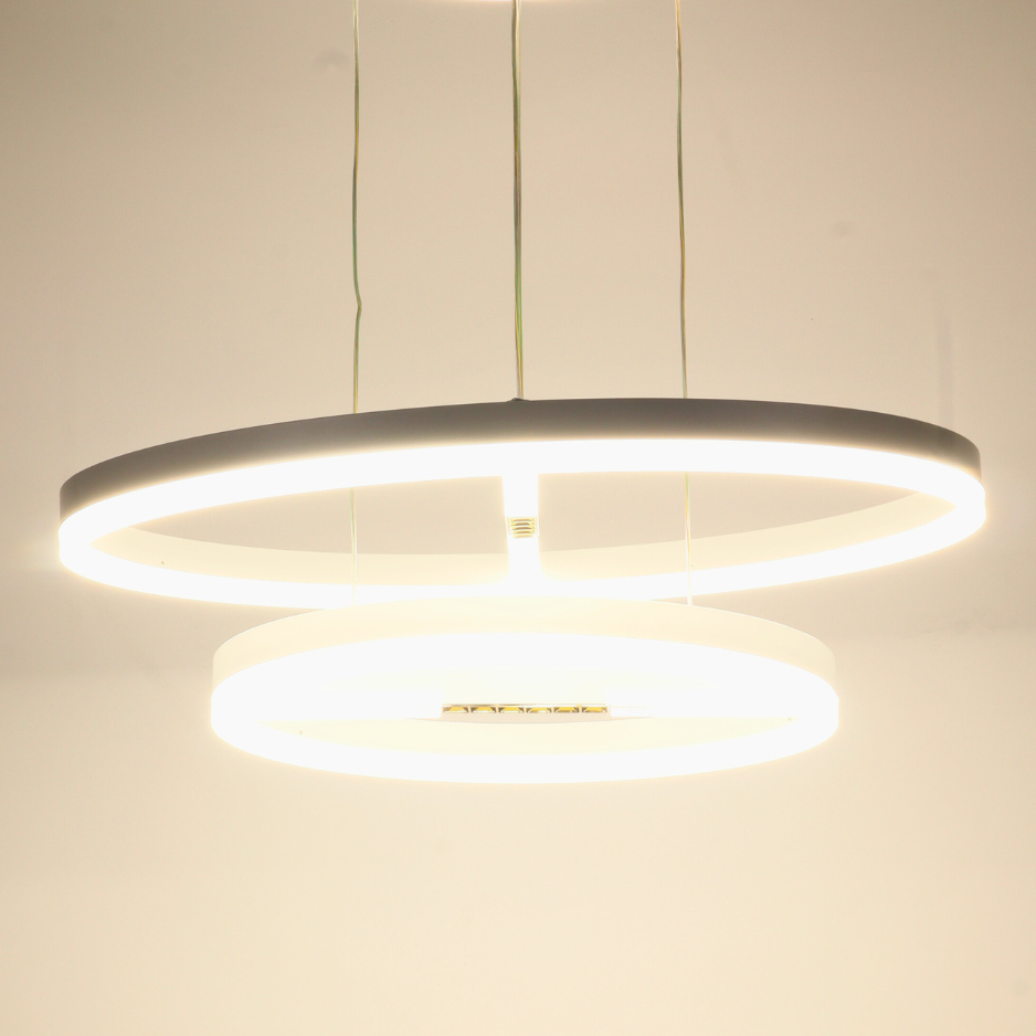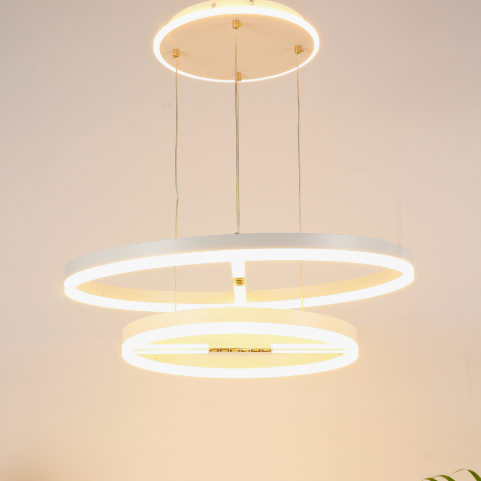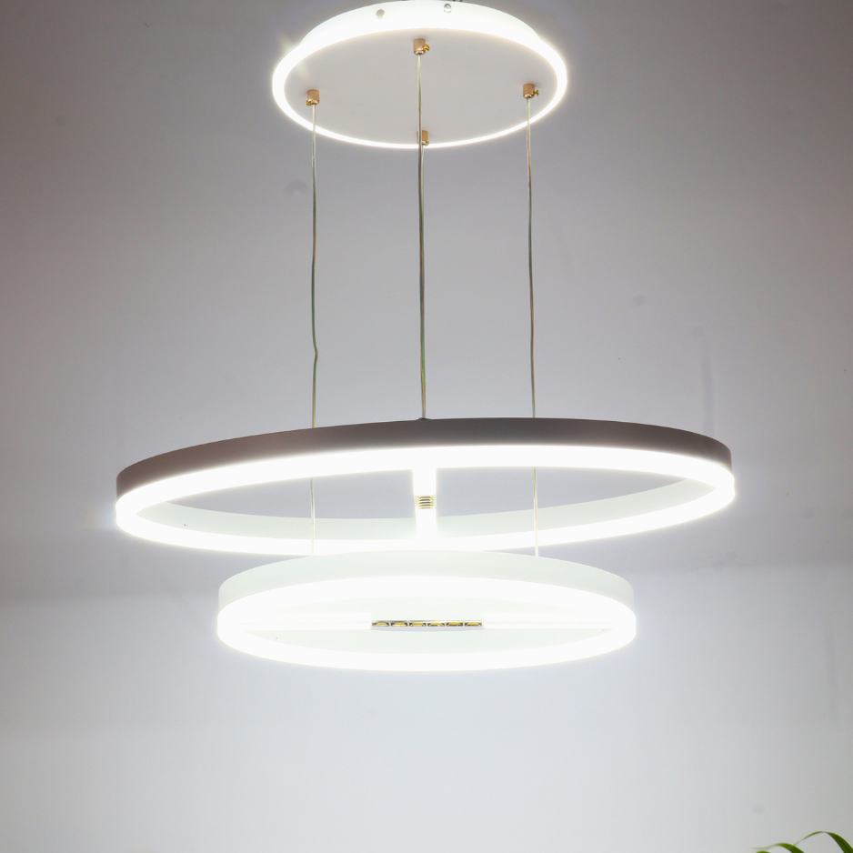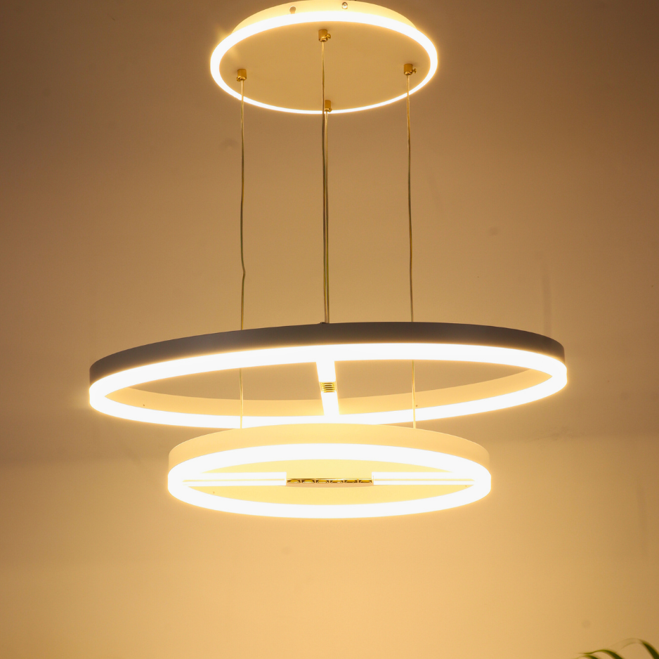 VORAYNE 160W 3-Color LED Chandelier – Dual Ring Pendant with Diffused & Spotlight Effect (600mm & 400mm Rings)