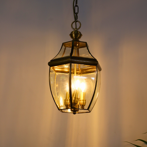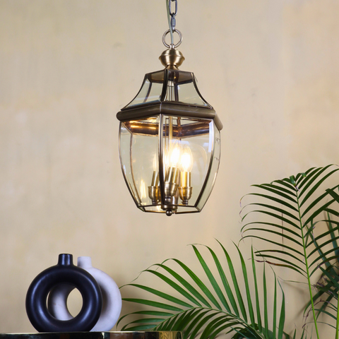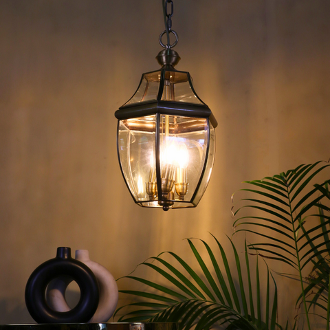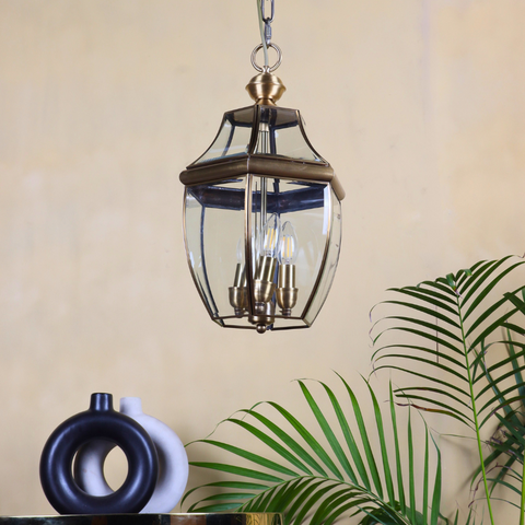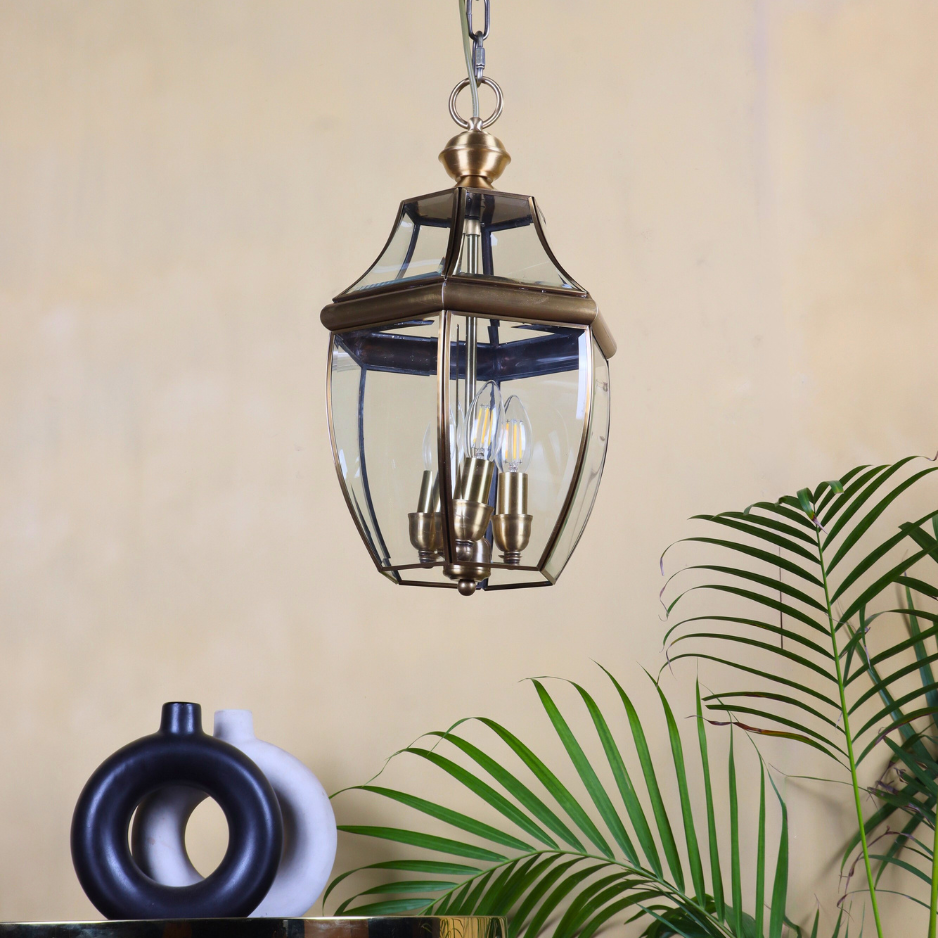 ENVELA | 3-Light Brass Lantern Pendant Chandelier