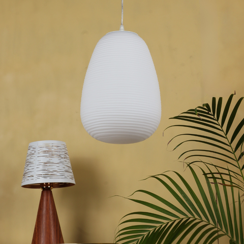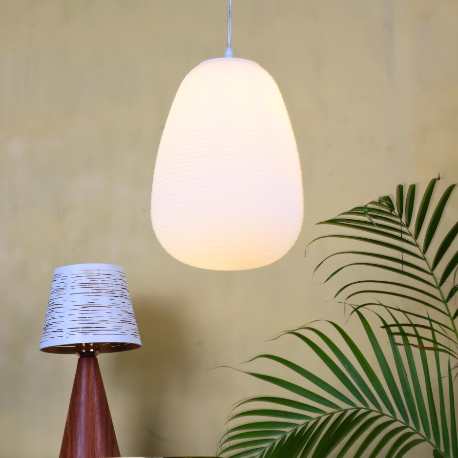 The LYXORA features a beautifully contoured, elongated ovular shade crafted from high-quality Glass. The glass is finished in a clean white and features subtle, fine ribbing or grooving that diffuses light evenly, ensuring a warm, glare-free 120° beam angle to illuminate your space. The modern shape and texture make it a versatile piece that complements Nordic, contemporary, and mid-century modern interiors.