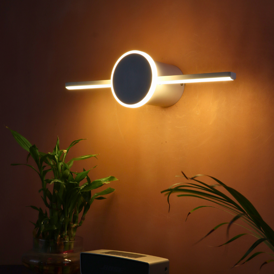 The AMBRA 14W LED Wall Light is a bold expression of modern design, combining a glowing circular halo with sleek horizontal LED bars. This architectural wall lamp adds both ambience and style, making it a standout choice for luxury homes and contemporary interiors.