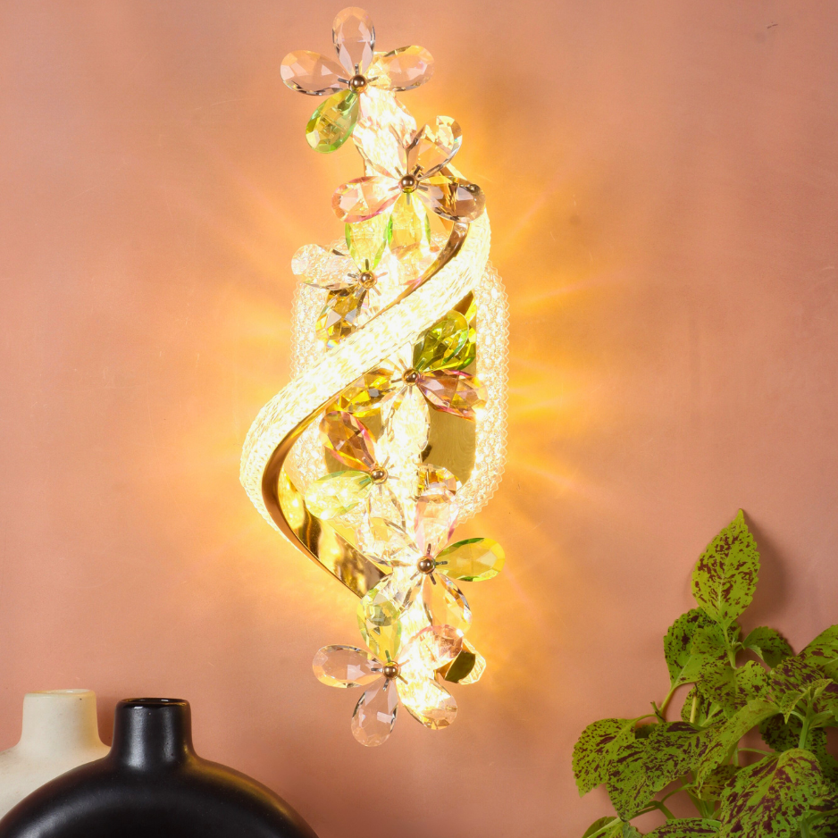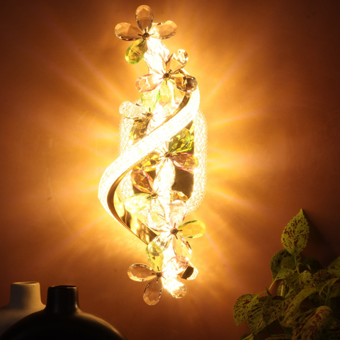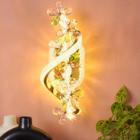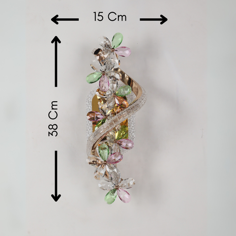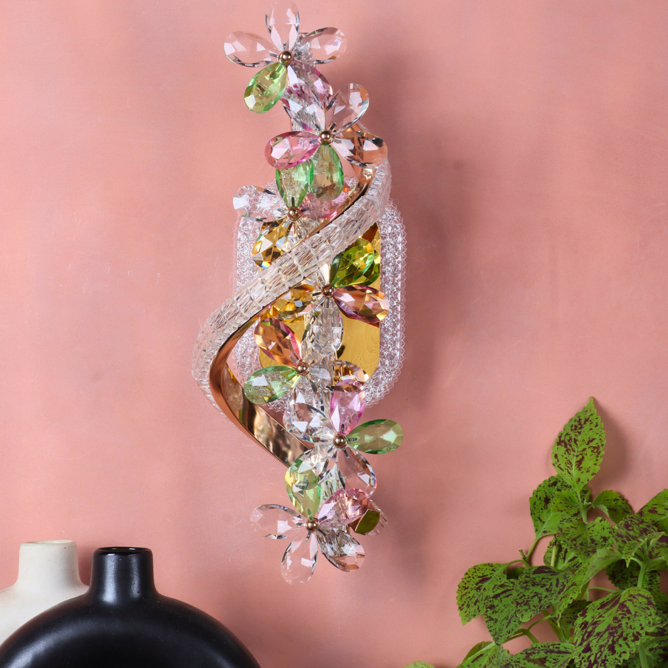 Transform your interiors with the Elvoria Wall Light, a breathtaking decorative piece that blends luxury crystal artistry with modern LED technology. Adorned with multicolored crystal petals in floral motifs and a twisting crystal wave accent, Elvoria is a dazzling wall feature designed to impress.