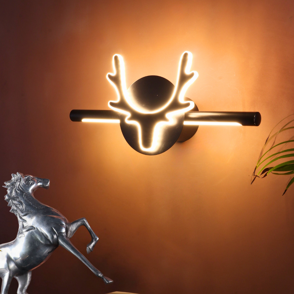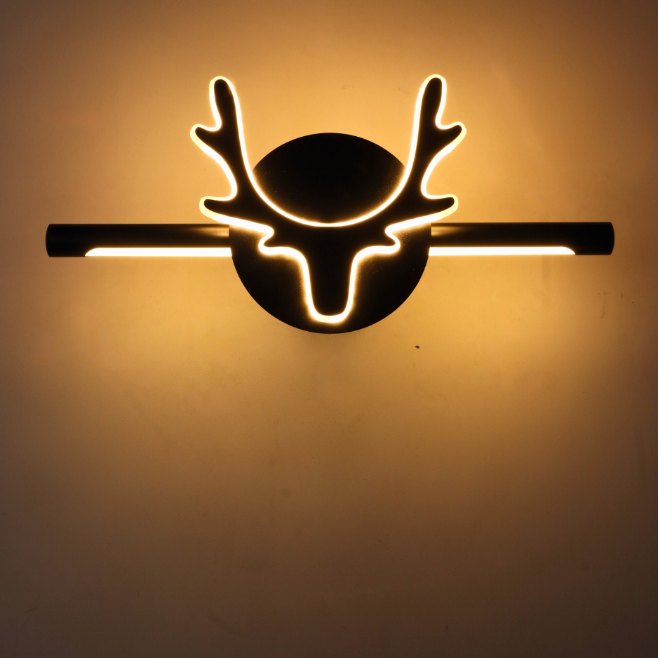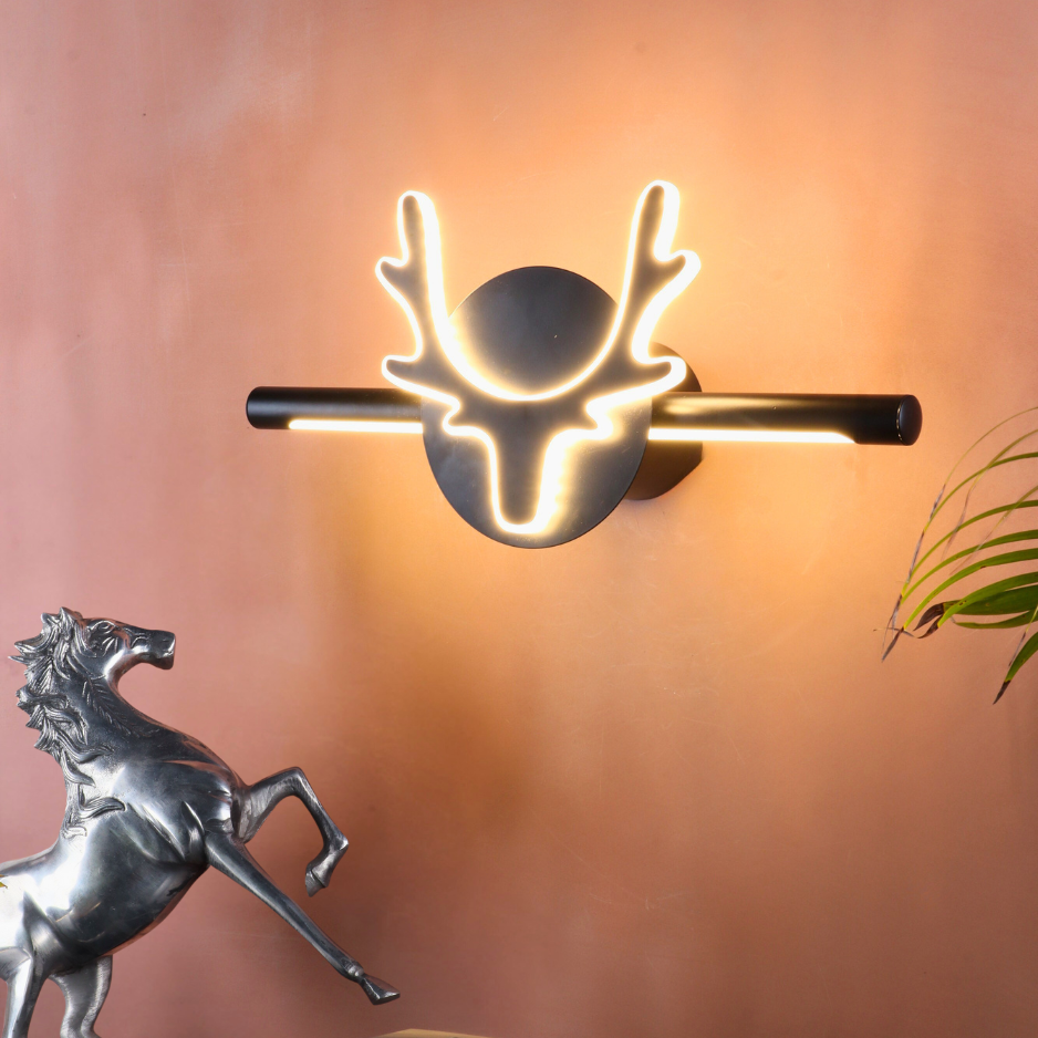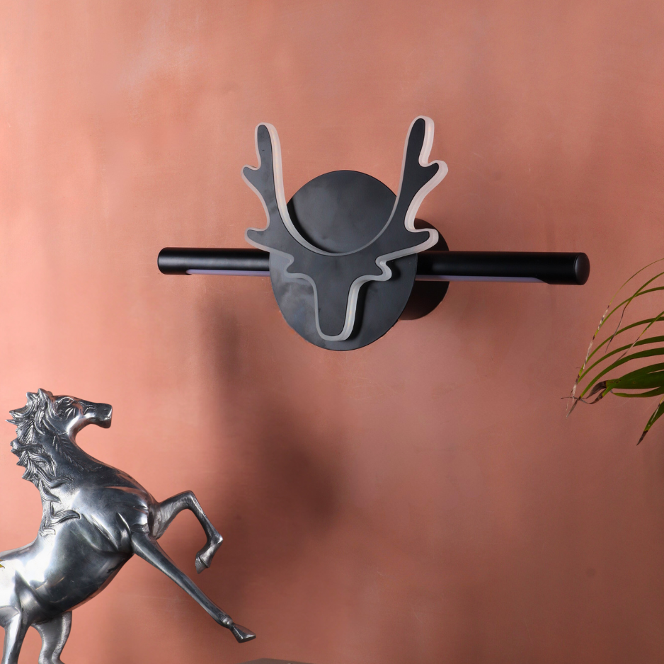 The LAPRISSE 21W LED Wall Light is a bold fusion of art and modern lighting design. With its 45 cm linear profile and a striking deer-head silhouette centerpiece, this fixture doubles as both illumination and wall décor. Offering dual lighting tones (White & Warm White), it adapts to different moods and enhances any interior with elegance and personality.