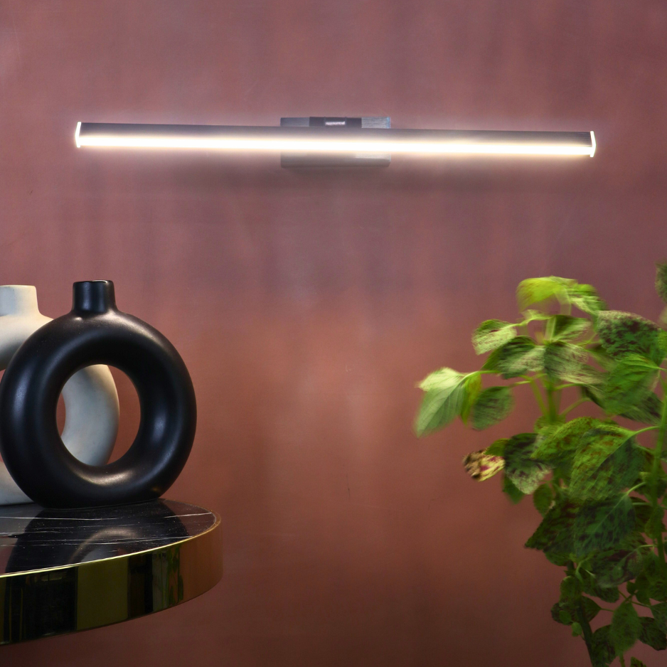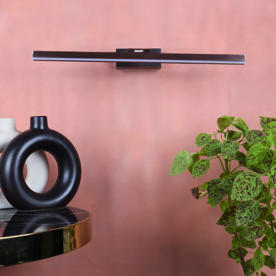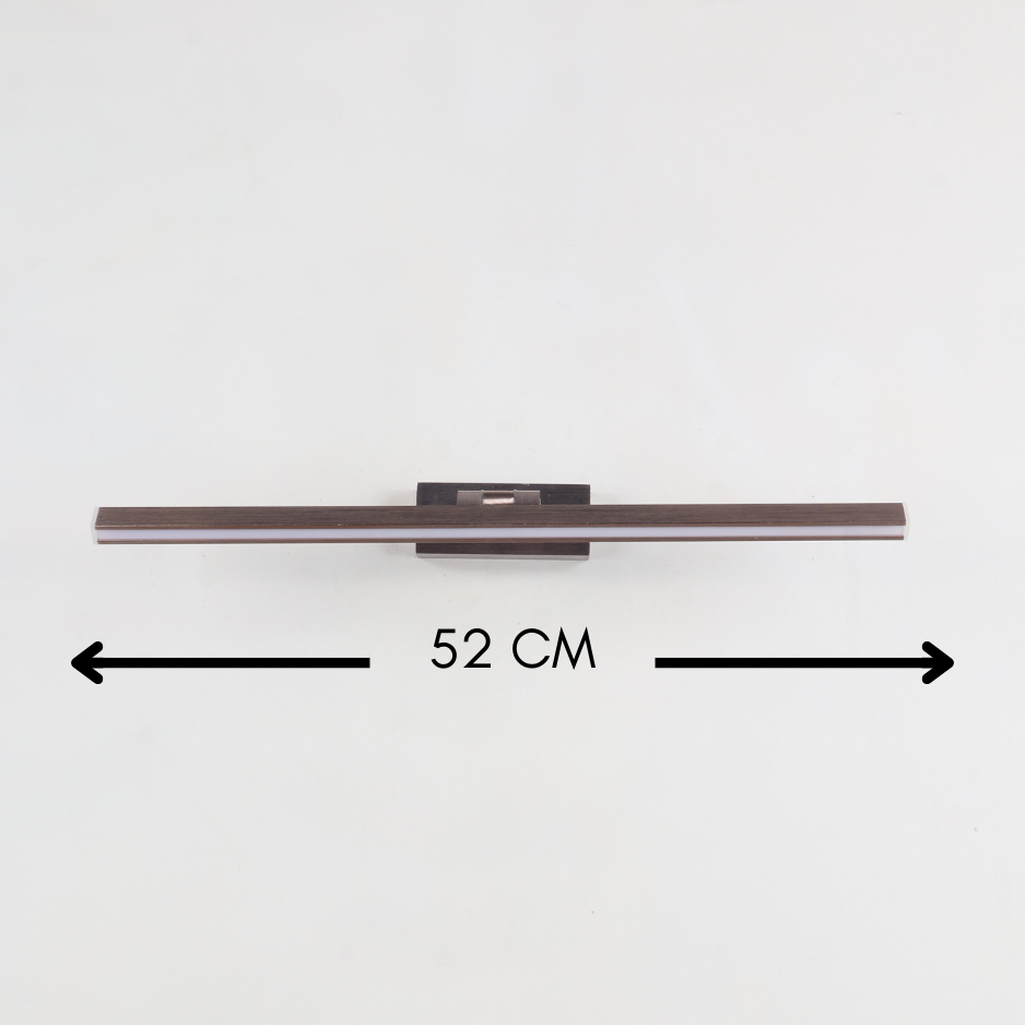 Crafted with a minimalist rectangular frame in a rich dark finish, the Myrrora adds a touch of modern sophistication to bathrooms, dressing tables, and living spaces. Its 52 cm length ensures wide and even light distribution, making it both stylish and practical.
