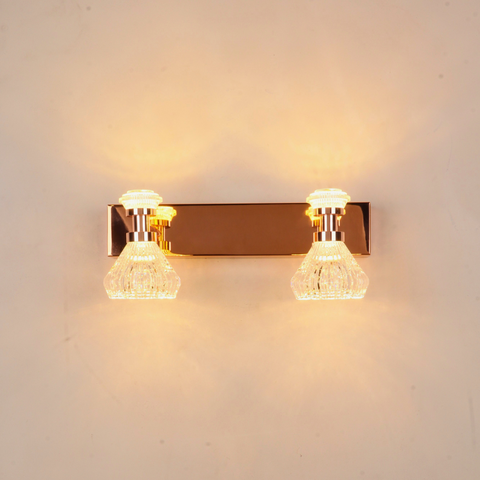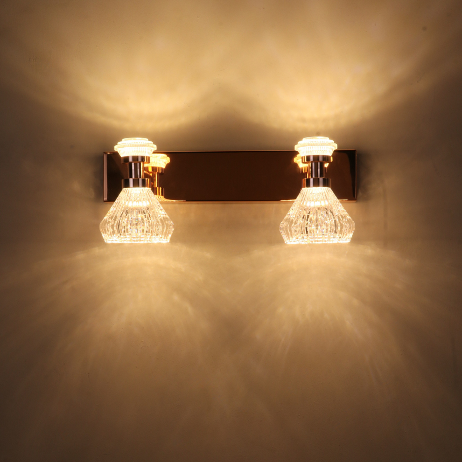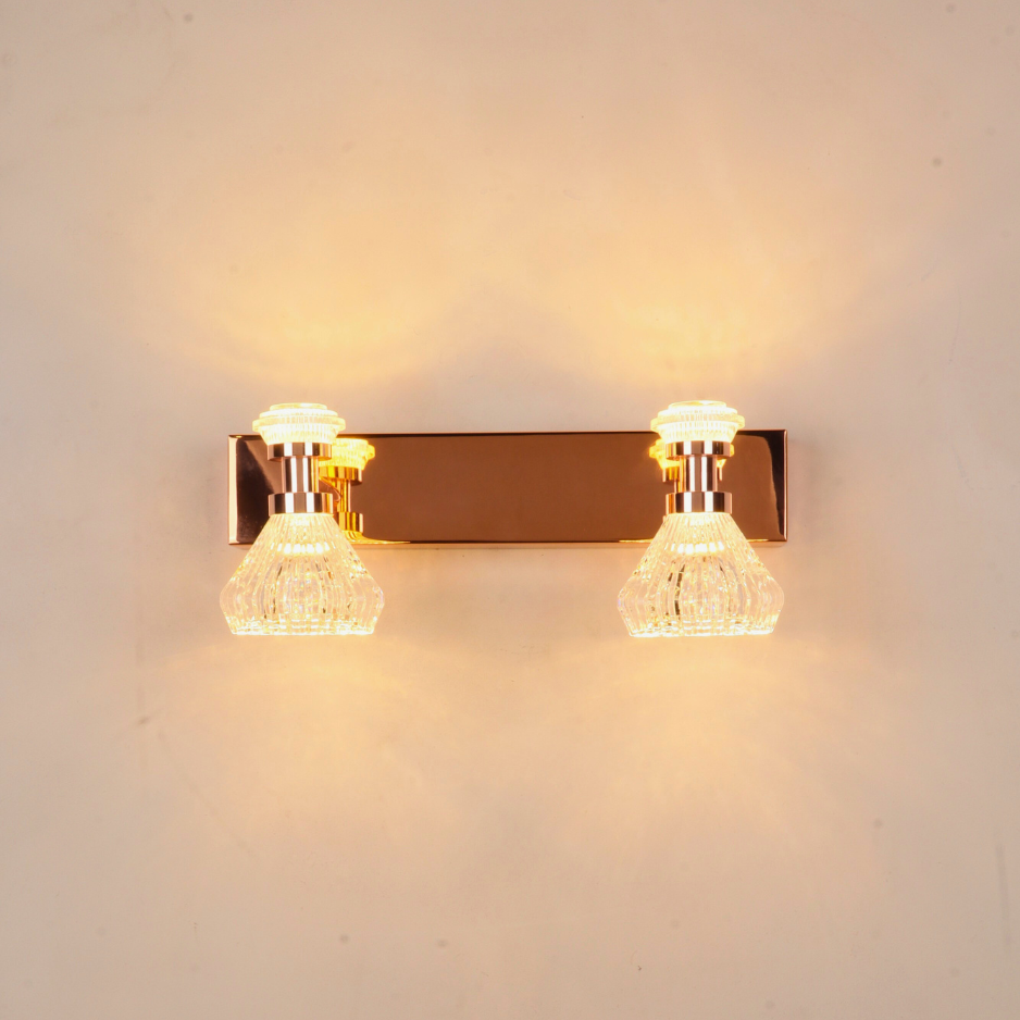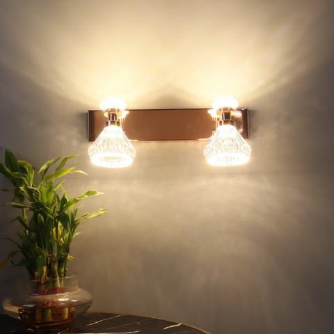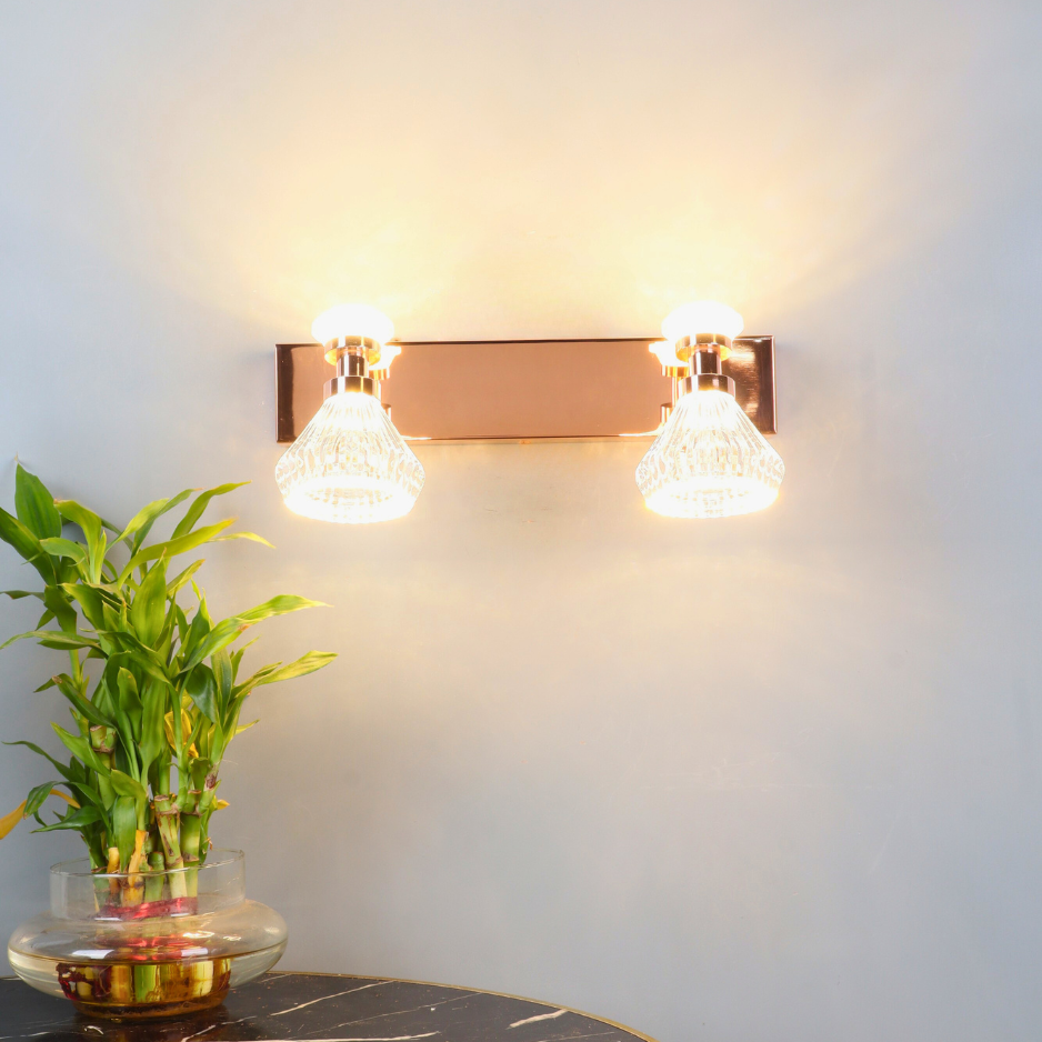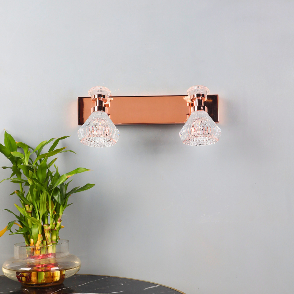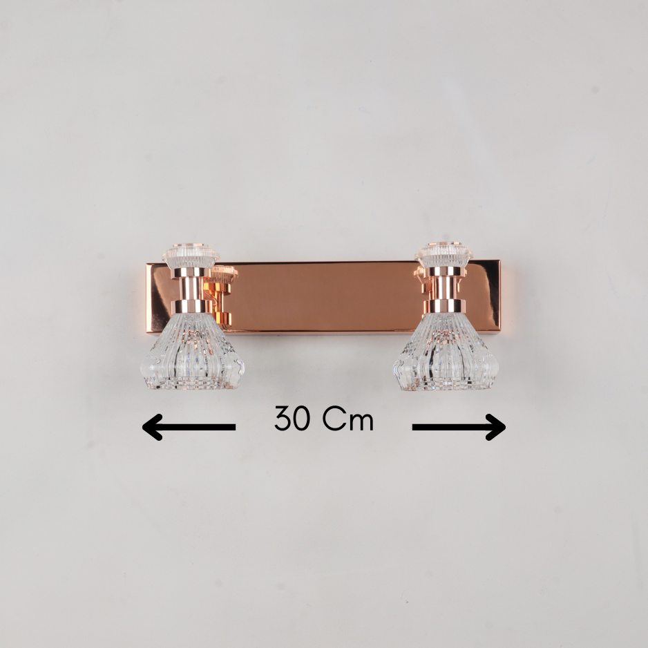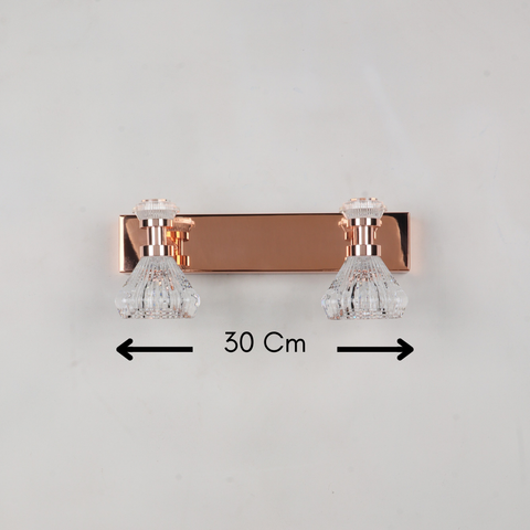 Add timeless elegance to your interiors with the Oravelle Wall Light, designed with a rose-gold finished base and twin crystal-cut shades. Its refined detailing and compact size make it a stunning choice for hallways, vanity areas, or accent walls.