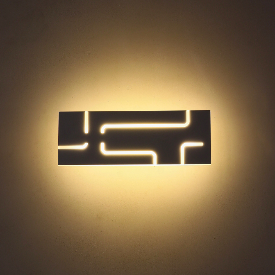 Design: Rectangular wall sconce with abstract geometric cut-outs