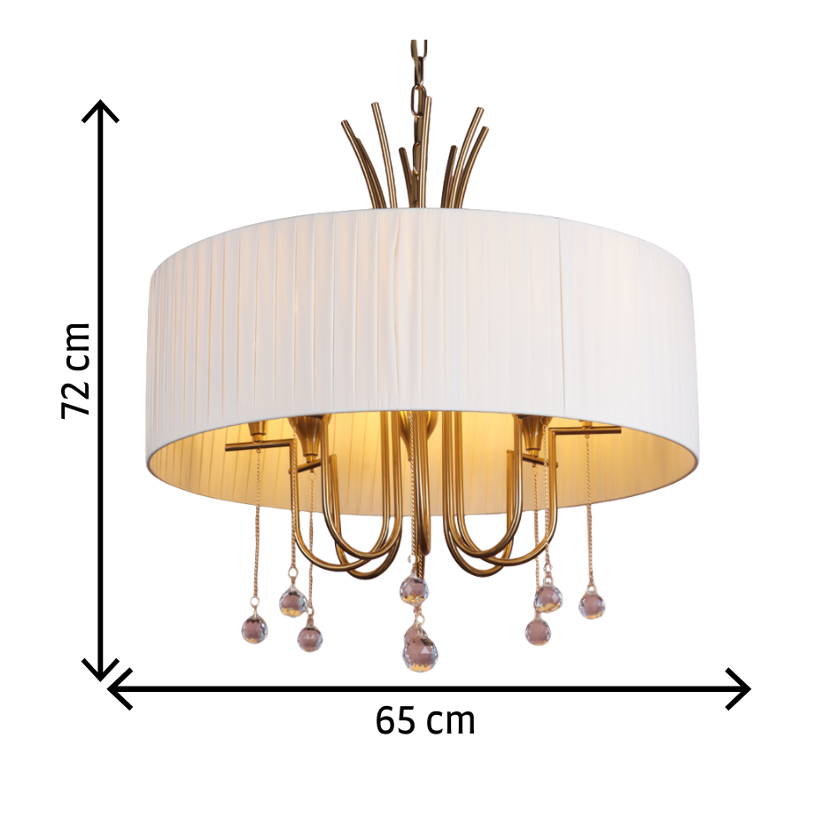 Sparkling Crystal Accents: Beneath the shade, multiple hanging arms are adorned with clear, polished Crystal Drops, catching the light and adding a layer of subtle luxury and sparkle.