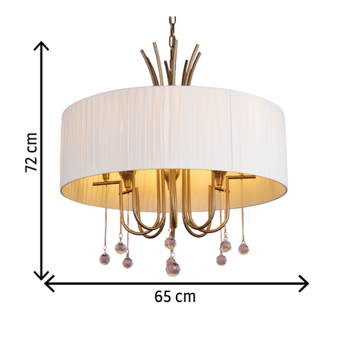 GRAVINNA Modern Drum Chandelier- Pleated Cloth Shade & Crystal Drops