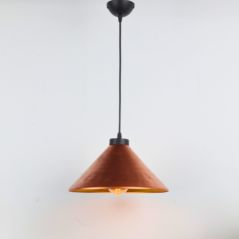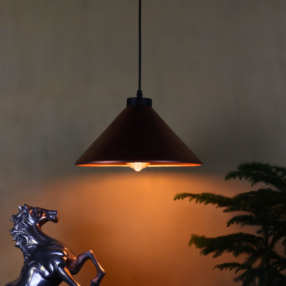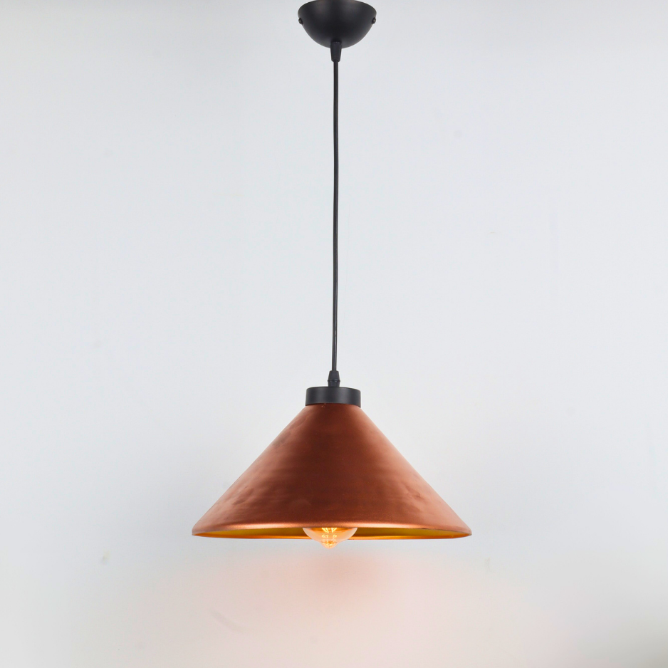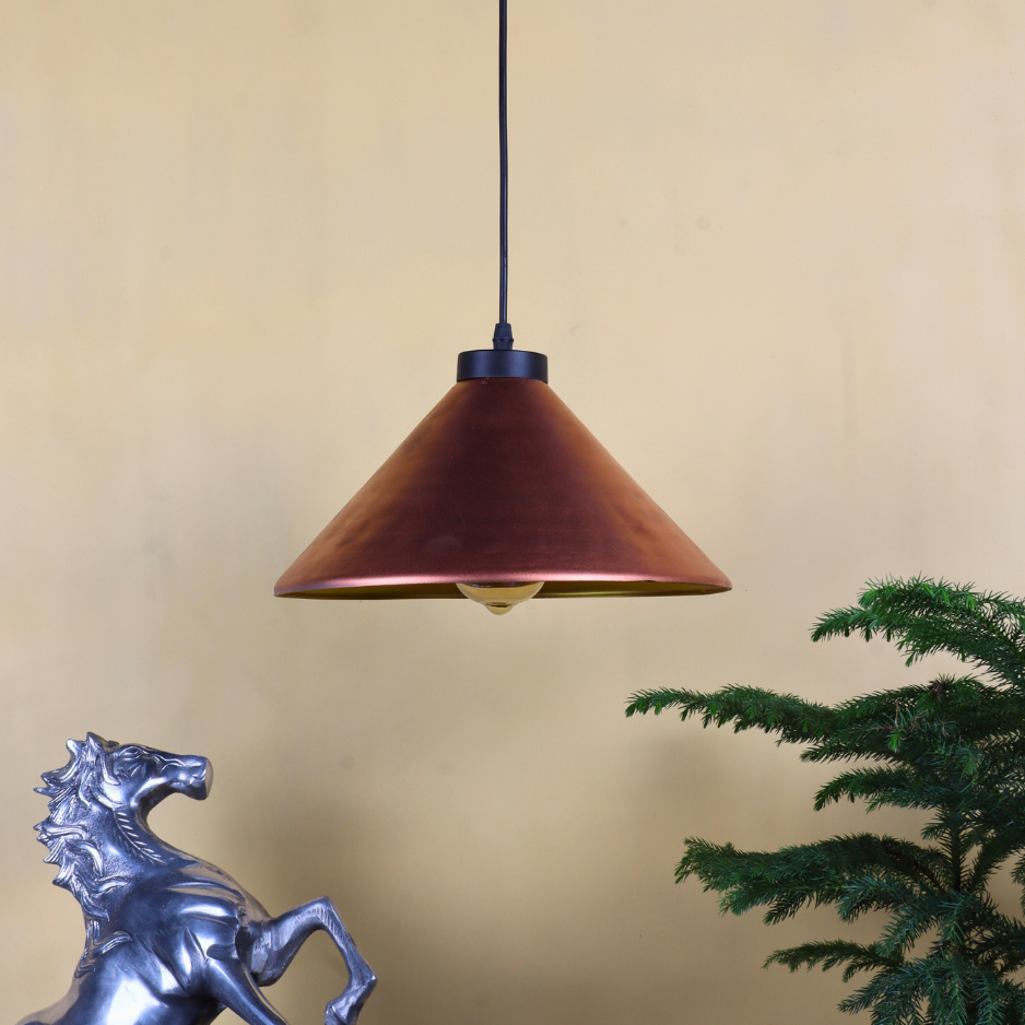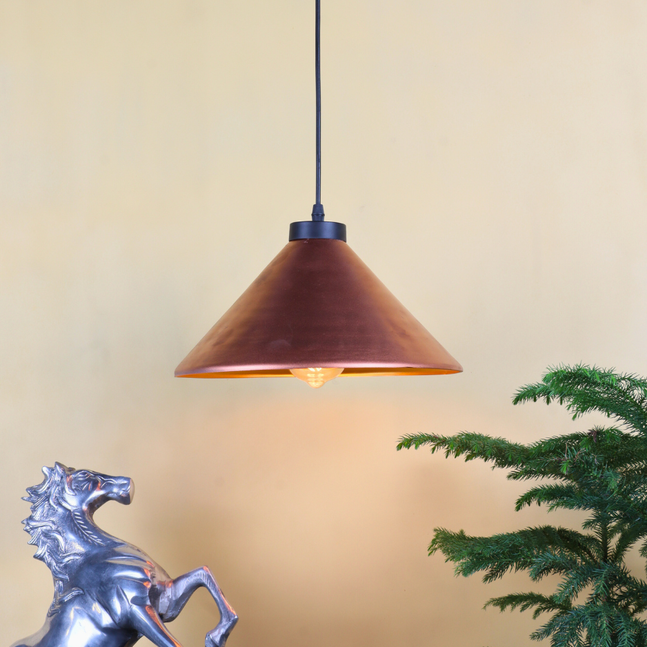 Design: Elegant conical pendant with handcrafted copper finish