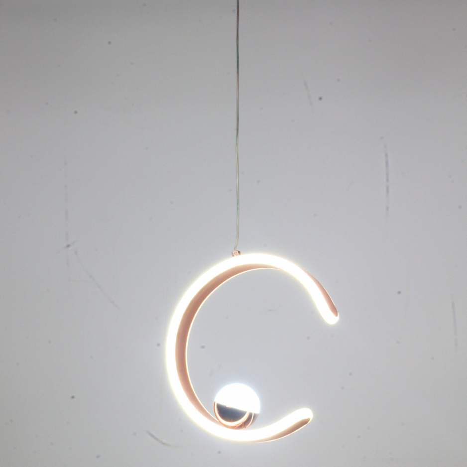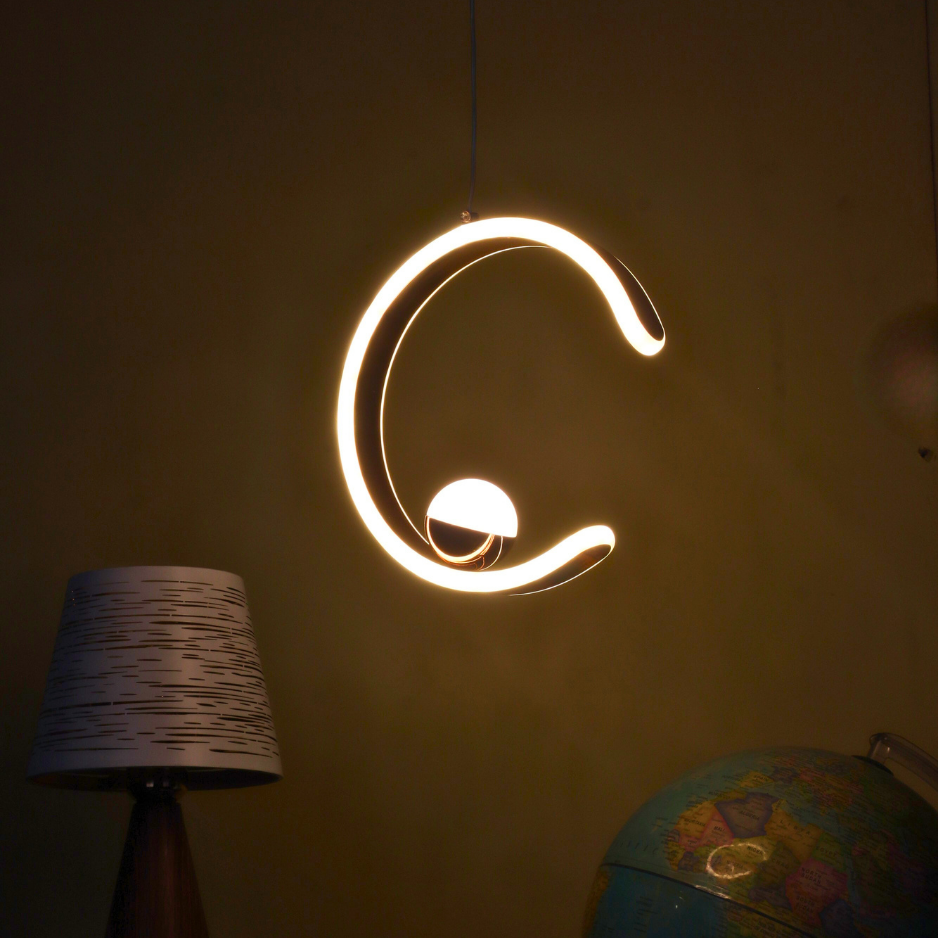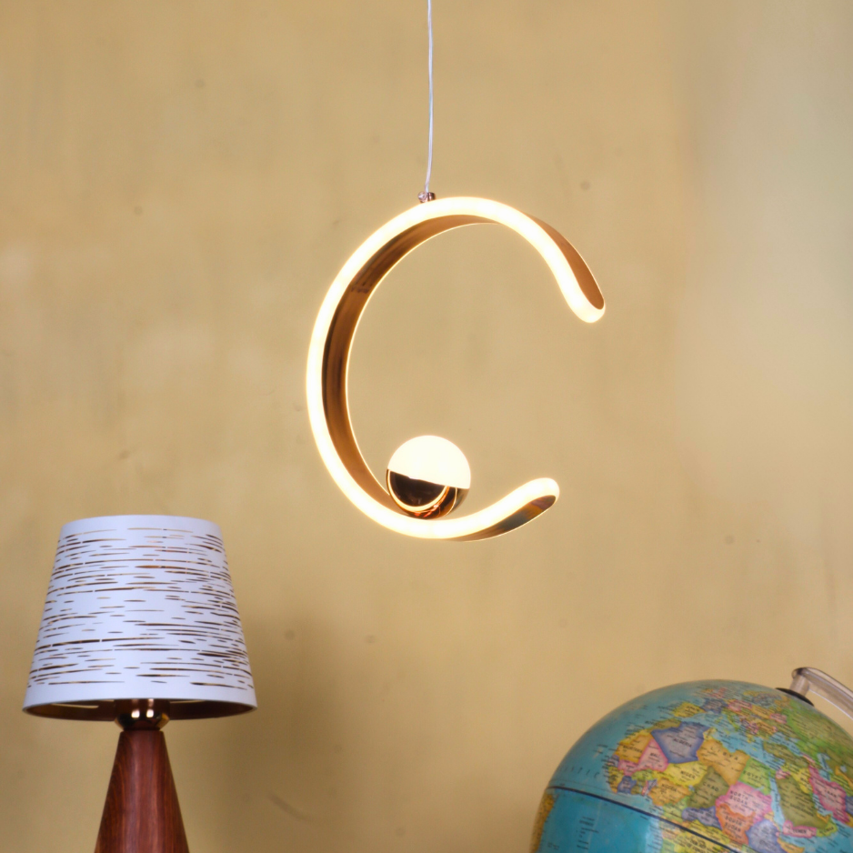 Bring celestial elegance into your space with the Quasira Pendant Light, designed in a striking crescent form that symbolizes modern artistry and timeless style. The pendant features a sculpted arc in a premium metallic finish, holding a luminous orb that radiates sophistication.