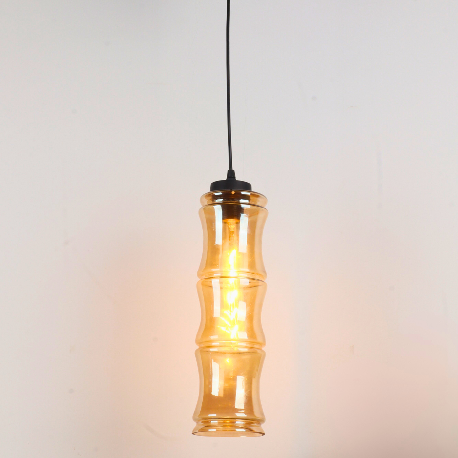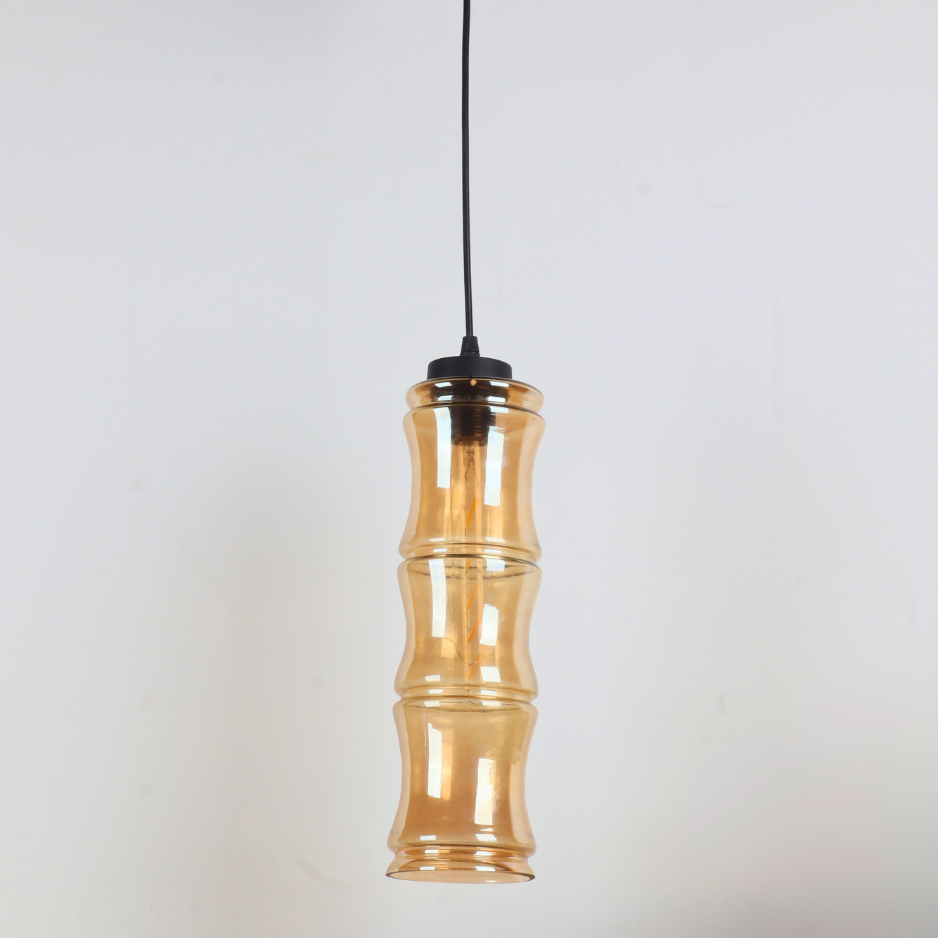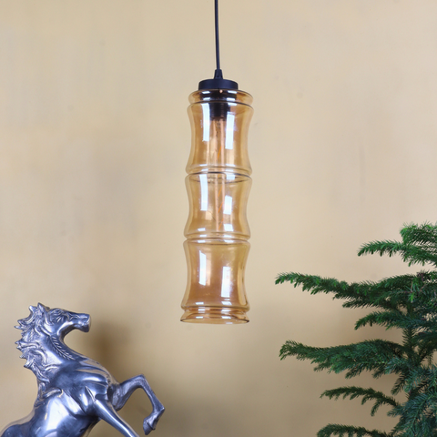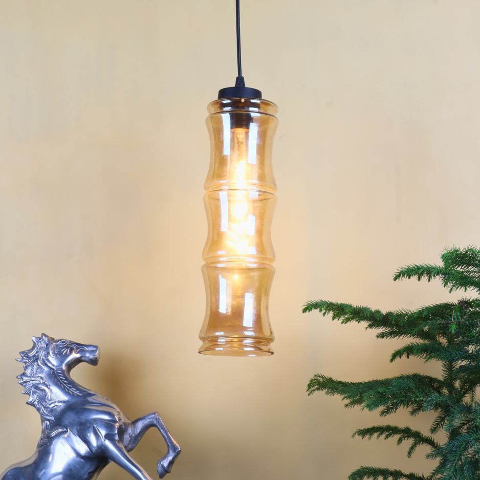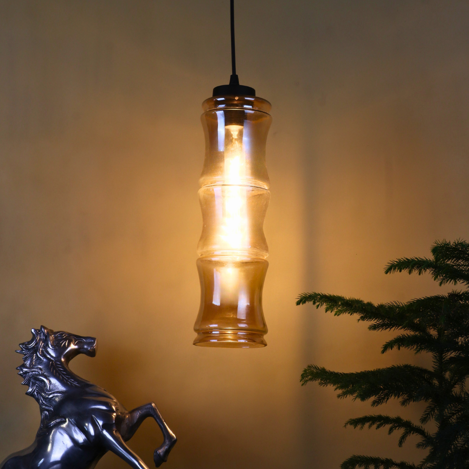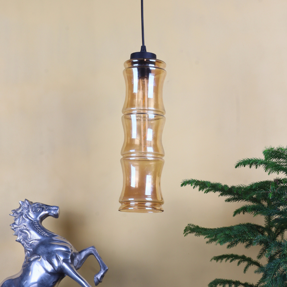 Add refined elegance to your interiors with the VIORA Pendant Light, designed to stand out with its tall, cylindrical bamboo-inspired silhouette. Measuring 14 inches in height and 4 inches in diameter, this pendant features a warm amber-tinted glass shade that creates a cozy, ambient glow while adding a touch of modern artistry.