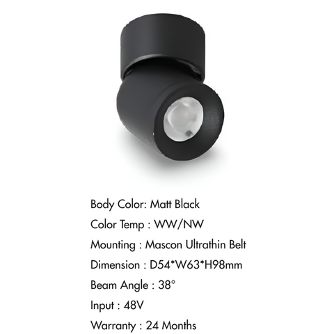Elevate your lighting design with the PORTO , a high-performance 7W spotlight engineered for precision and style. This fixture is designed to seamlessly integrate with the innovative Mascon Ultrathin Belt system, offering a modern and minimalist lighting solution for discerning spaces.