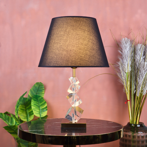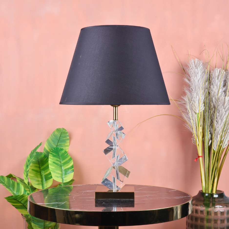 CYLORRAX Table Lamp – 54 cm Crystal Stack Design with Black Shade (E27 Compatible)