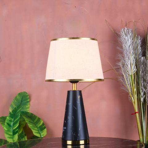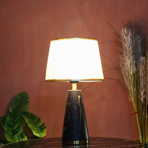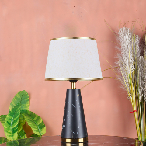 LUREXIS Table Lamp – Black Marble Finish with White Shade (Height: 45 cm, E27 Holder)