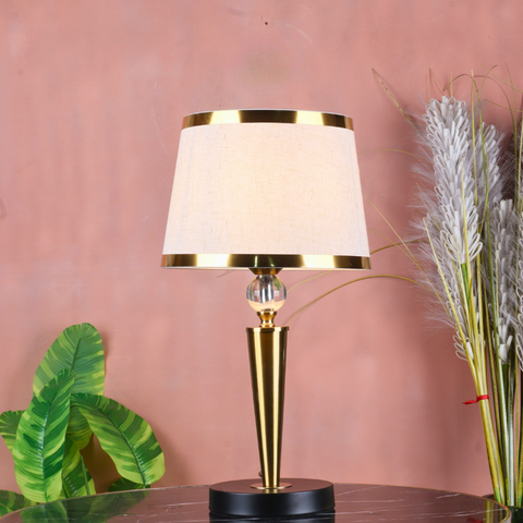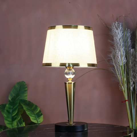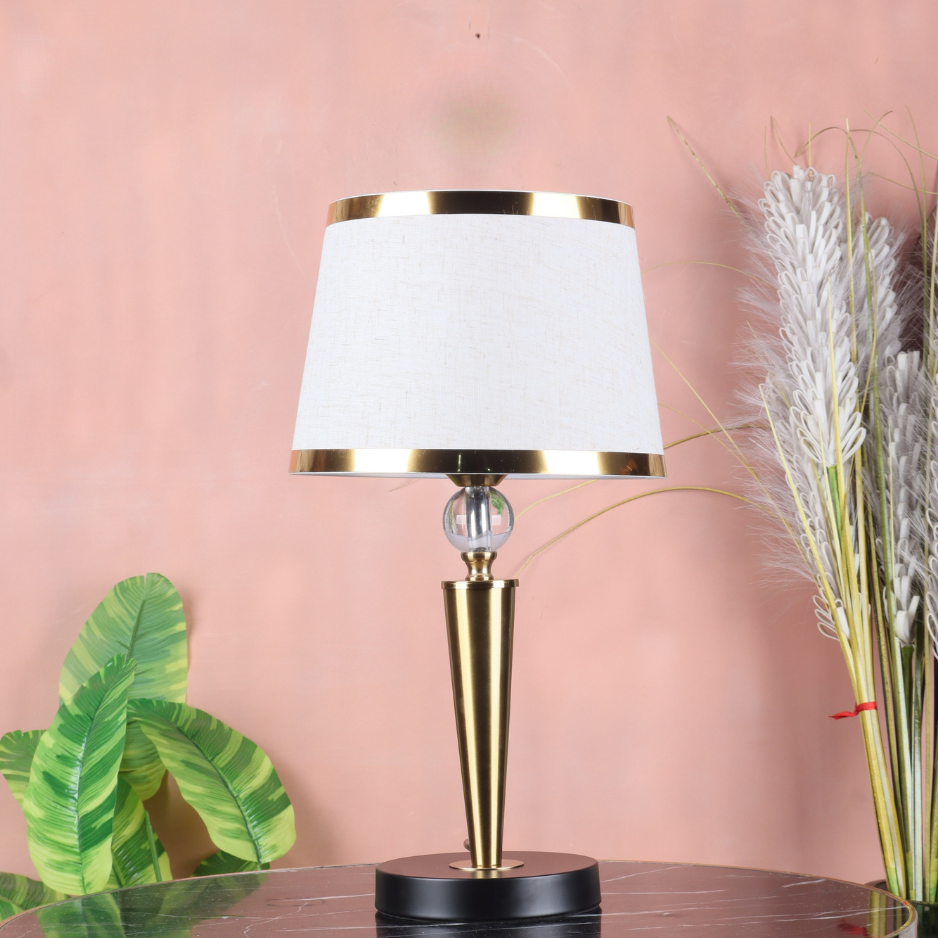 Enhance your space with the OMBRYSS Table Lamp, designed to blend modern luxury with timeless elegance. Featuring a sleek gold conical base, a crystal glass sphere, and a white fabric shade with gold trimming, this lamp radiates sophistication and warm charm. Ideal for bedrooms, living rooms, and premium interiors, it brings both style and serenity to your décor.
