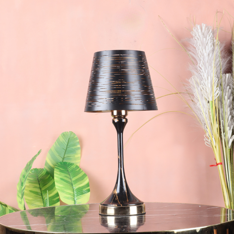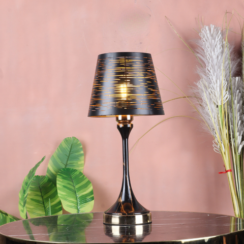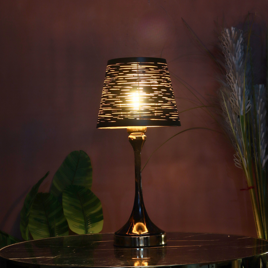 SHYVARA – Modern Black & Metal Table Lamp with Laser-Cut Shade (E27 | H45 cm)