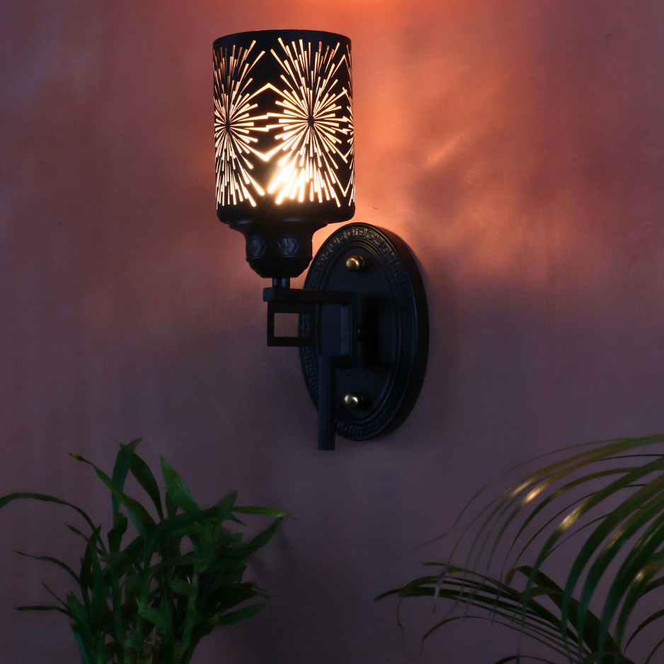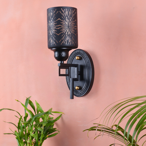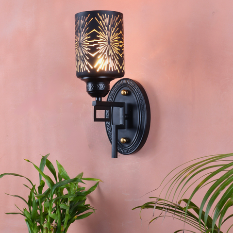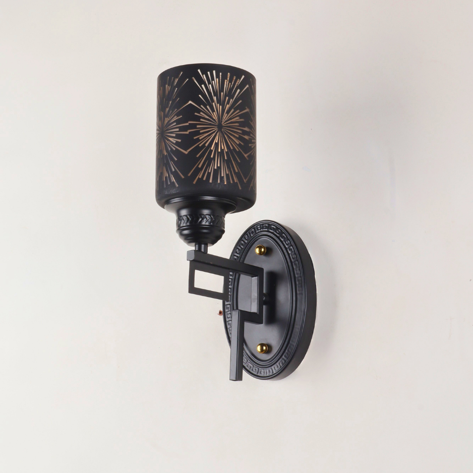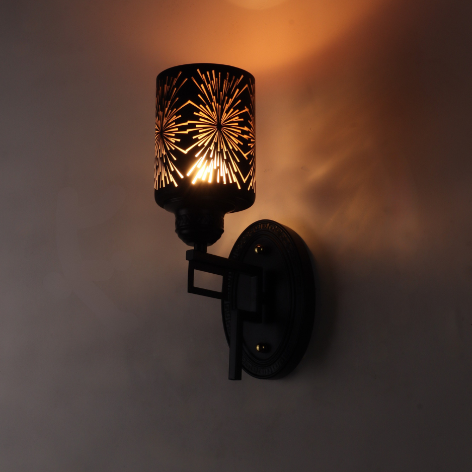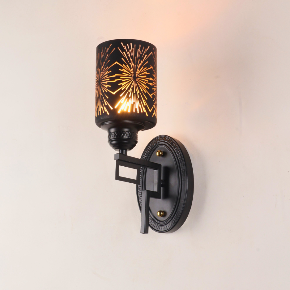 The MORYNTHIA Wall Light blends vintage charm with modern craftsmanship. Designed with a matte black metal base and a laser-cut cylindrical shade, it casts a striking pattern of light and shadow across the wall. The intricate starburst design brings a sense of elegance and warmth, making it a perfect accent piece for classic and contemporary interiors alike.