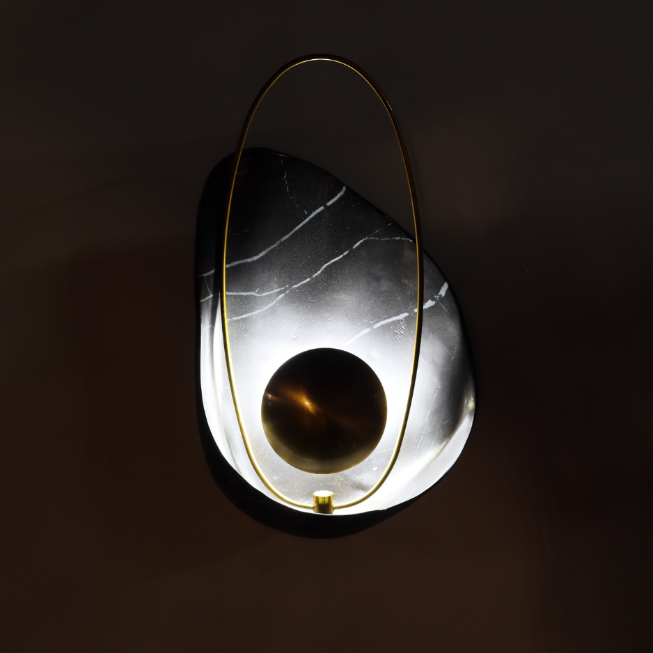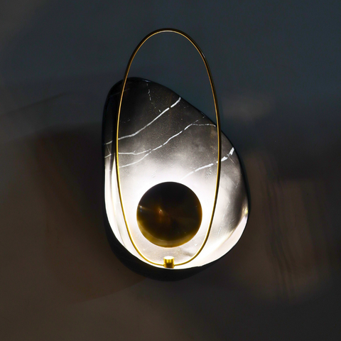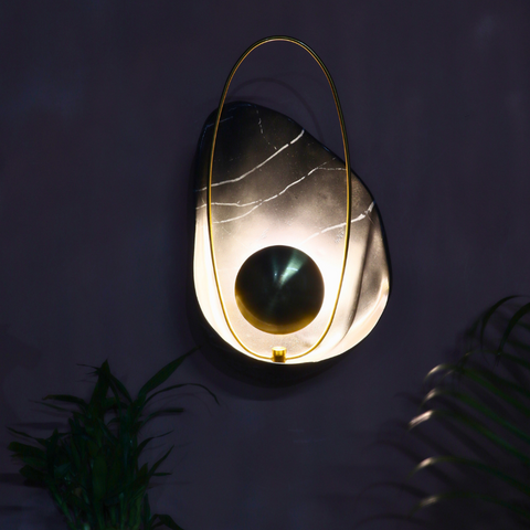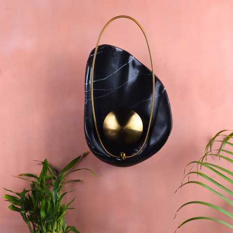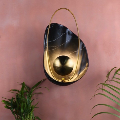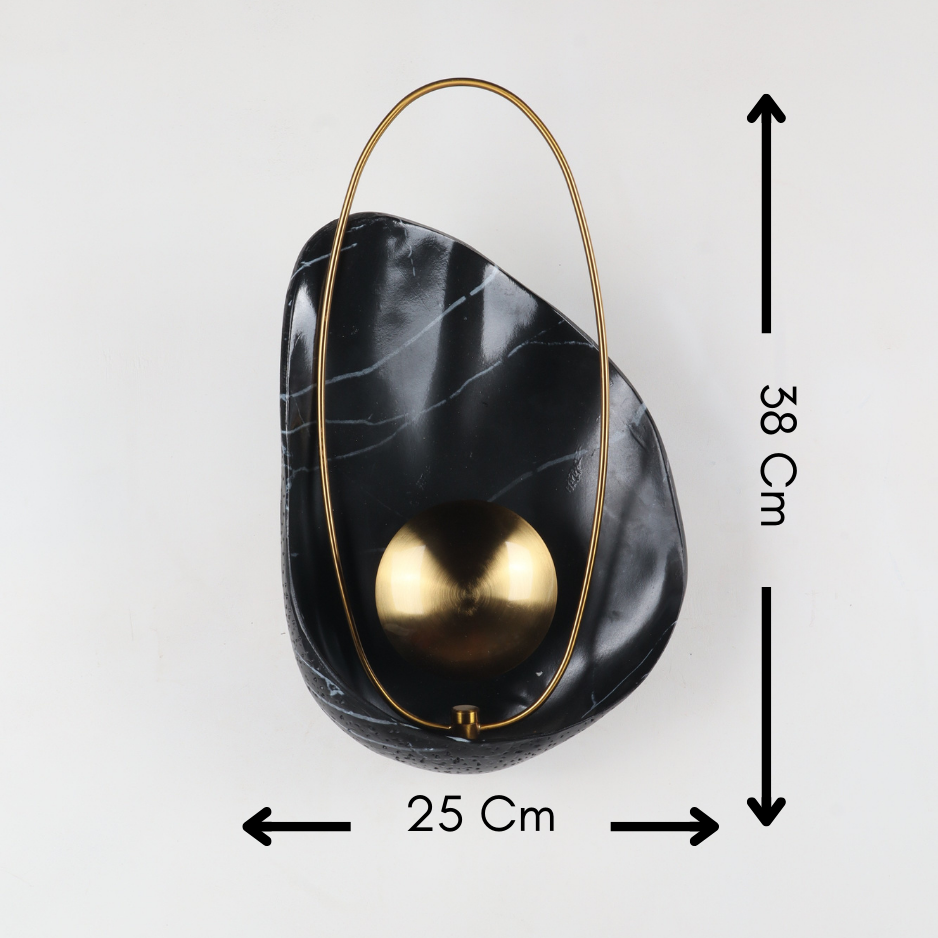 The PAVRYNE 7W LED Wall Light is a true fusion of art and lighting, designed to be both functional and decorative. With a 38 cm × 25 cm sculptural frame featuring a black marble-effect backdrop, a golden hoop, and a central brushed-gold sphere, it creates a refined and modern statement. Emitting a 3000K warm white glow, it sets a cozy, inviting ambience in any room.