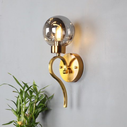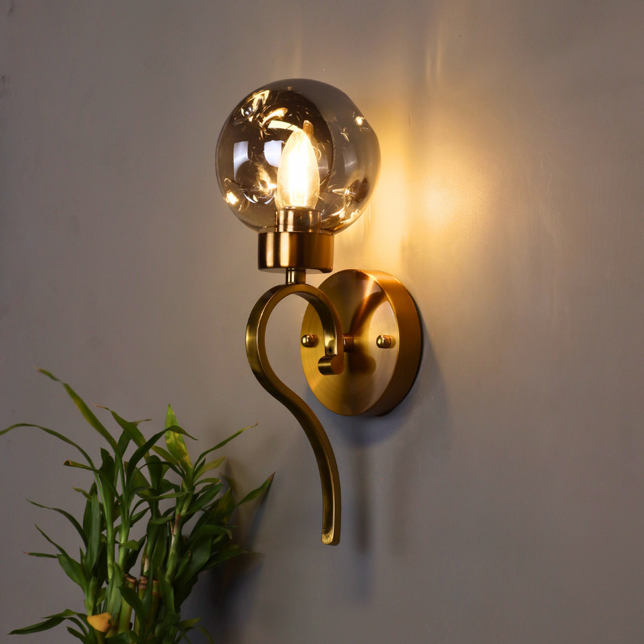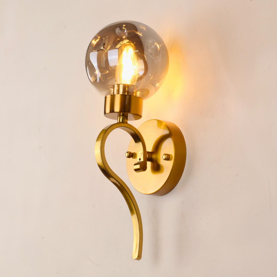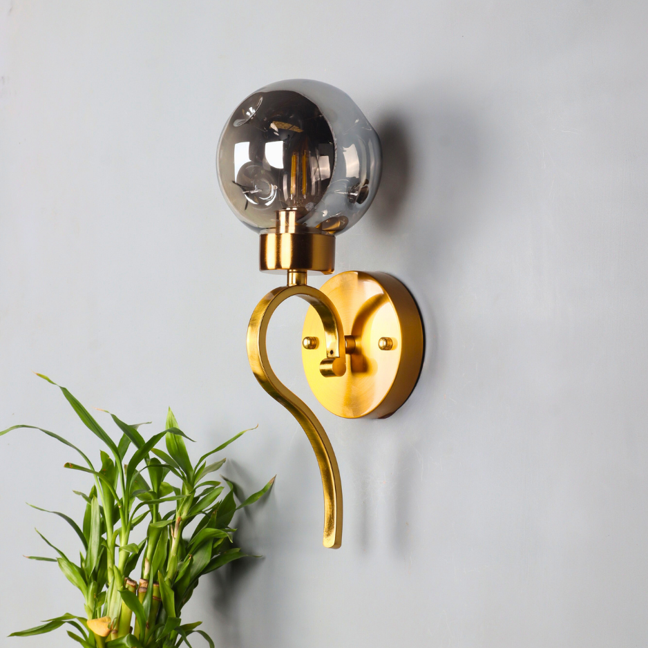 Timora: Modern Gold Wall Sconce with Smoky Glass Globe