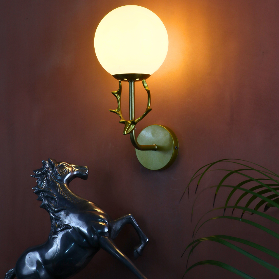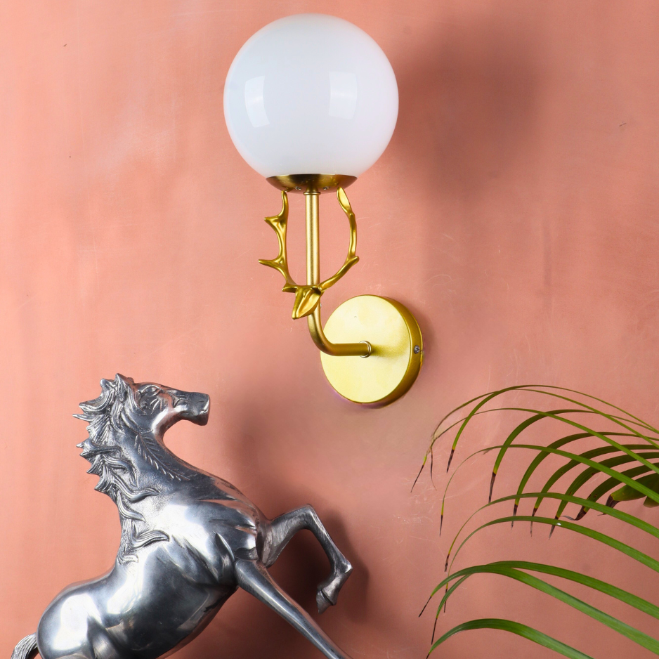 Illuminate your interiors with timeless elegance through VEYLISSE, a statement wall light that balances modern minimalism with regal detailing. Featuring a matte gold body and a frosted glass globe diffuser, this design casts a soft, soothing glow — perfect for refined living spaces.