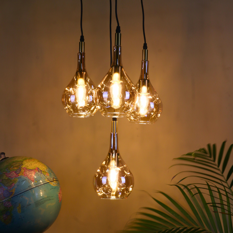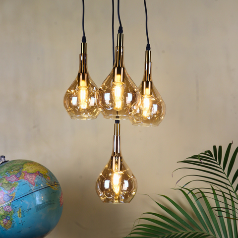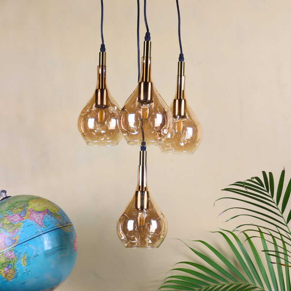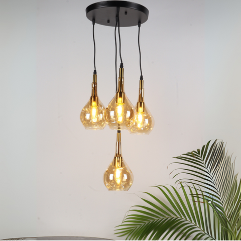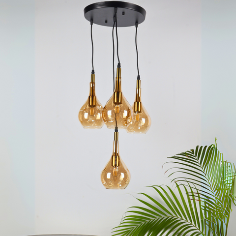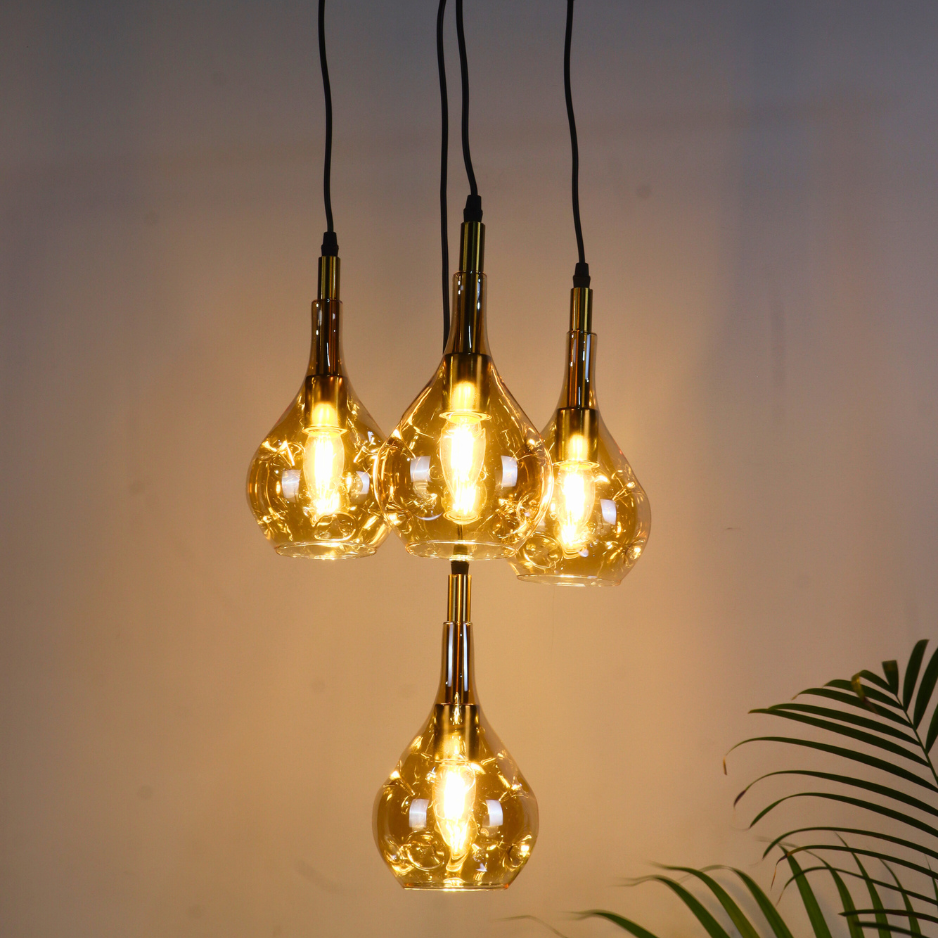 The CLARION Chandelier is a stunning display of modern artistry and radiant elegance. Designed with five golden teardrop-shaped glass pendants, this cluster chandelier creates a warm, luminous glow that instantly elevates any space.