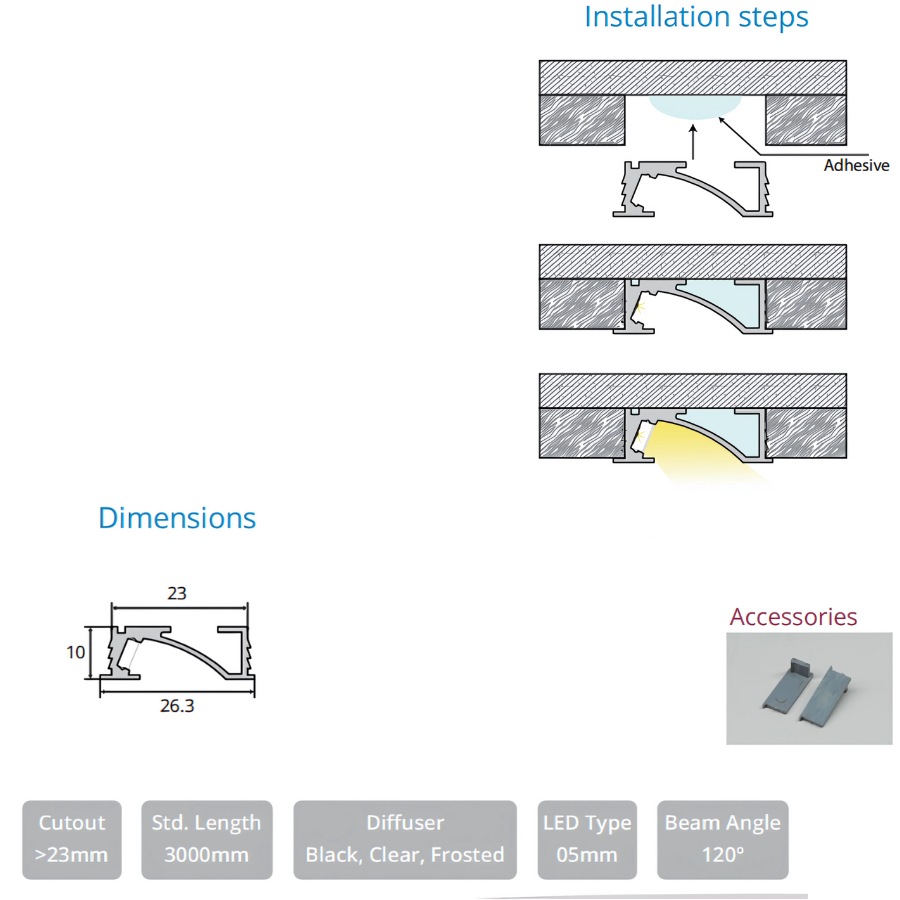 The AETHEL 23MM is a compact and elegantly curved recessed LED profile, designed for seamless integration into ceilings, walls, or furniture panels. With its unique arc-style diffuser channel, it offers enhanced light dispersion and a refined architectural aesthetic.