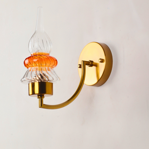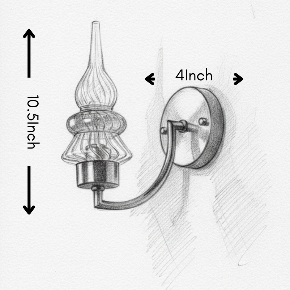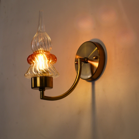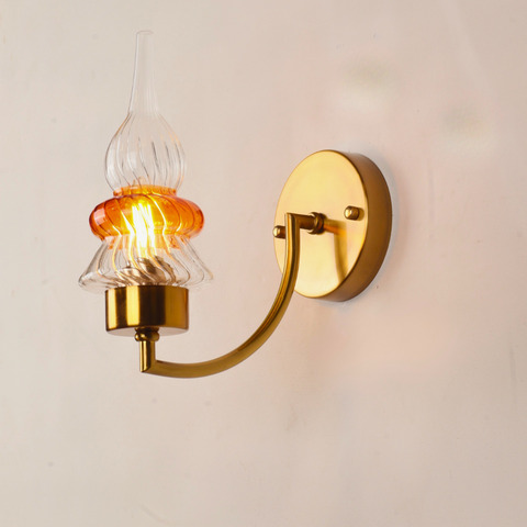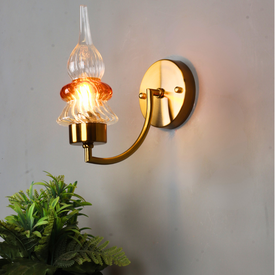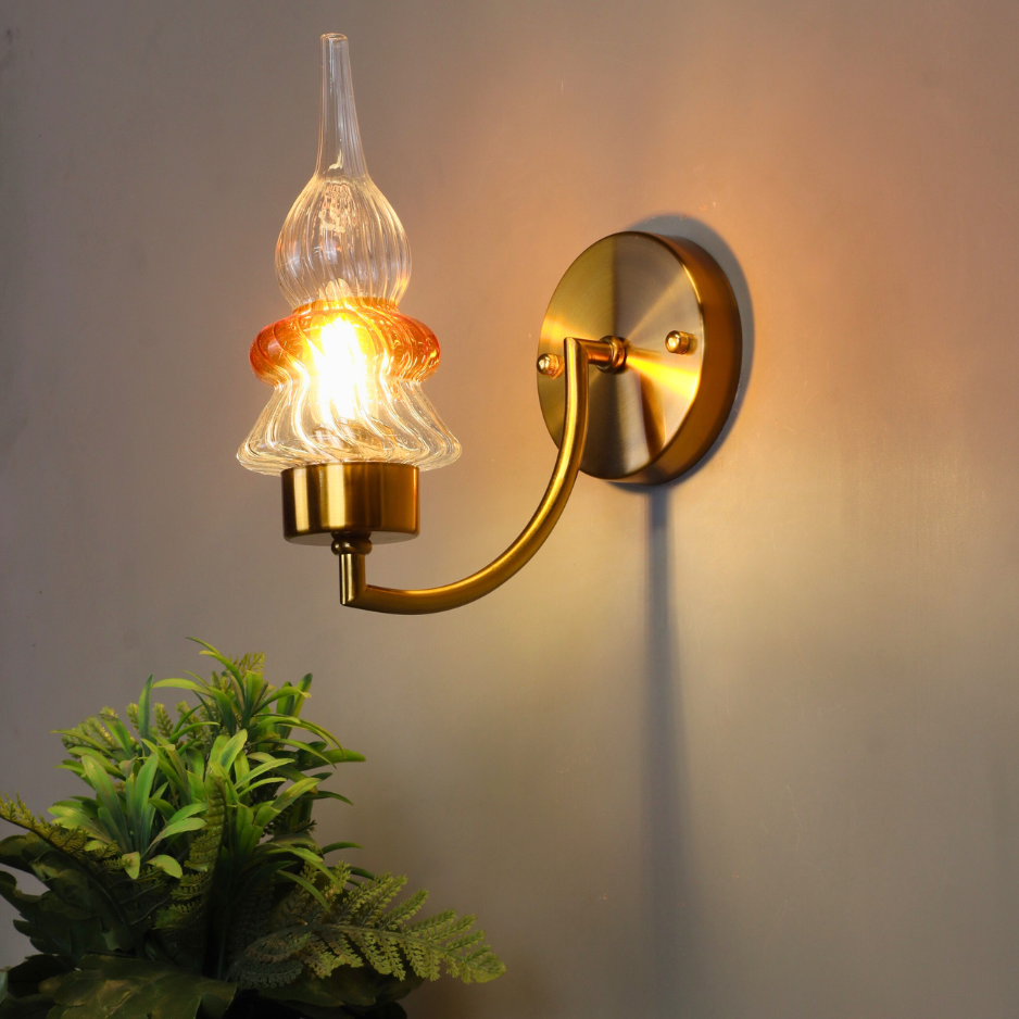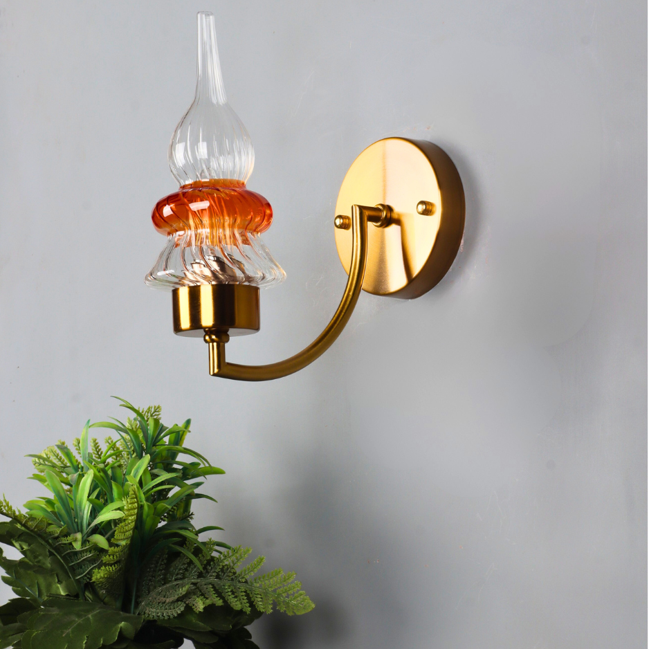 Enhance your interiors with this Gold Finish Decorative Glass Wall Light, a perfect blend of vintage charm and modern elegance. Featuring a beautifully crafted hand-blown glass shade with artistic curves, this wall sconce creates a warm, inviting glow ideal for living rooms, bedrooms, hallways, and dining areas.