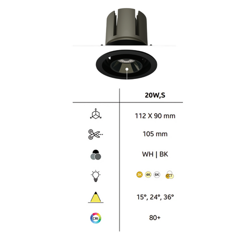 The ENCIRCLE is a versatile recessed spotlight designed for high-end interiors that require focused illumination with clean architectural aesthetics. Available in both round and square trims, it blends seamlessly into ceilings while delivering powerful, glare-controlled light.