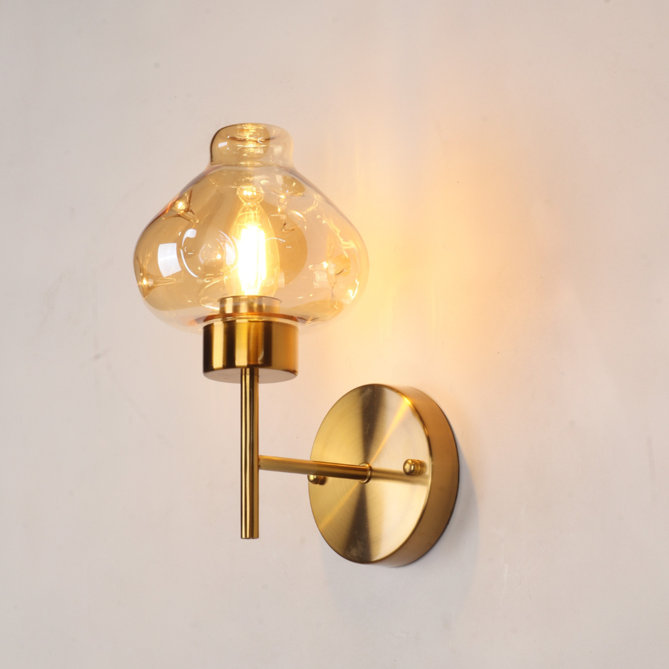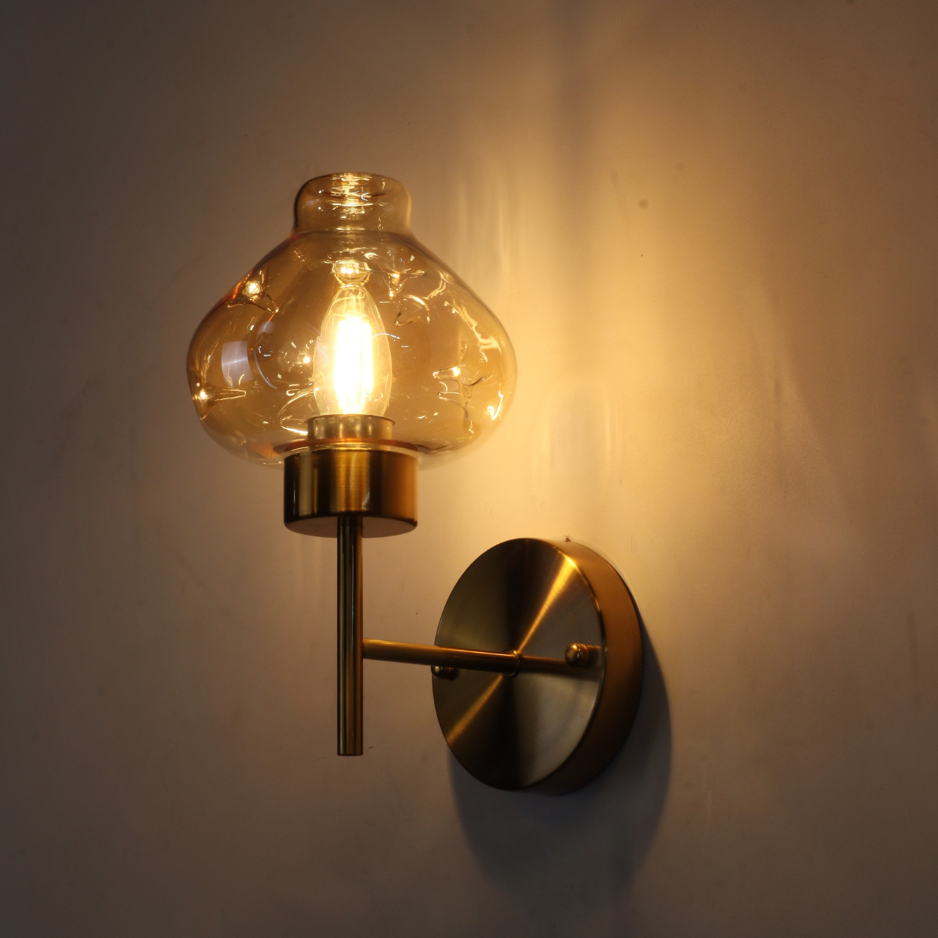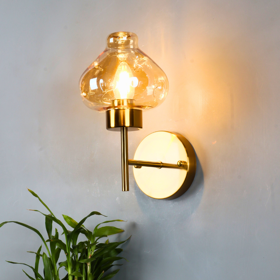 LUSTARO – Contemporary Wall Light with Golden Base & Artistic Amber Glass Shade