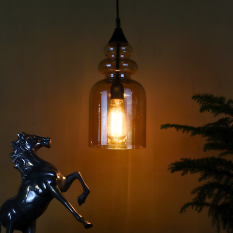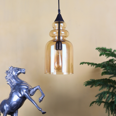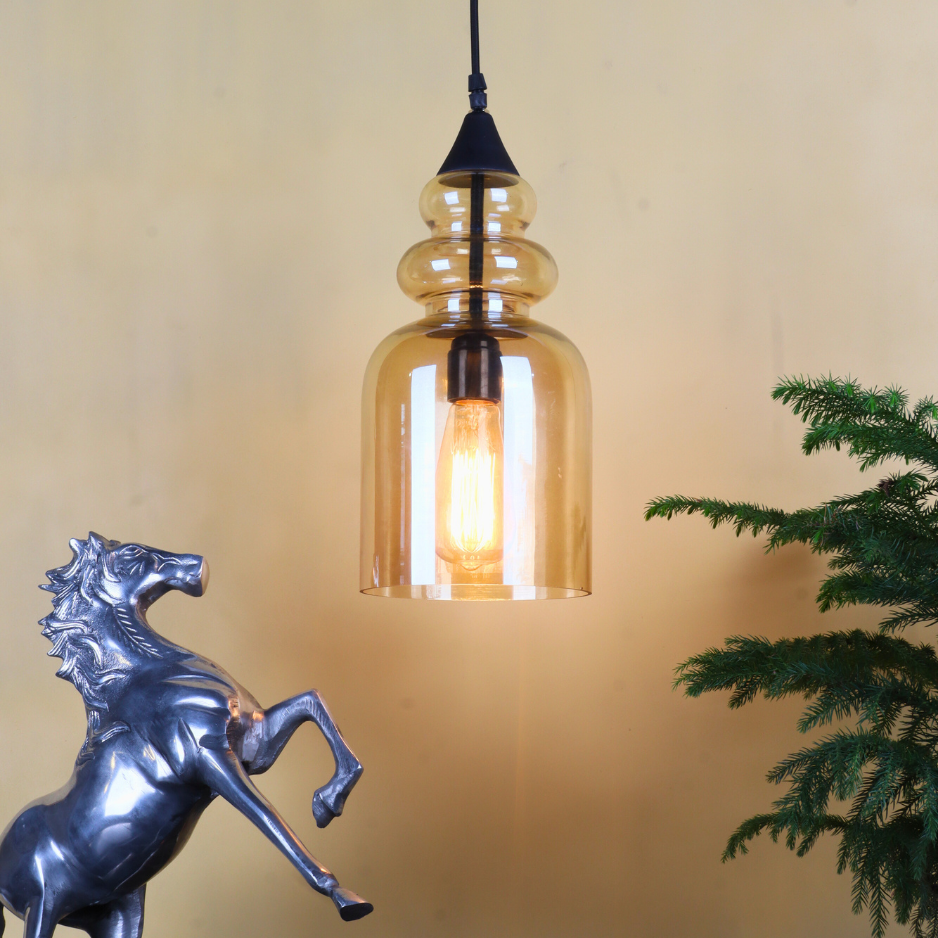 Bring sophistication and warmth into your interiors with the SERAPH Pendant Light, a sleek combination of amber-tinted glass and minimalist design. Featuring a tall, cylindrical silhouette with elegant curves (12 inches height x 7 inches diameter), this pendant creates a glowing focal point that enhances any décor style.