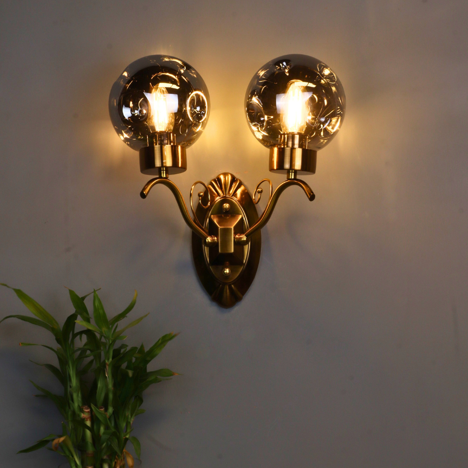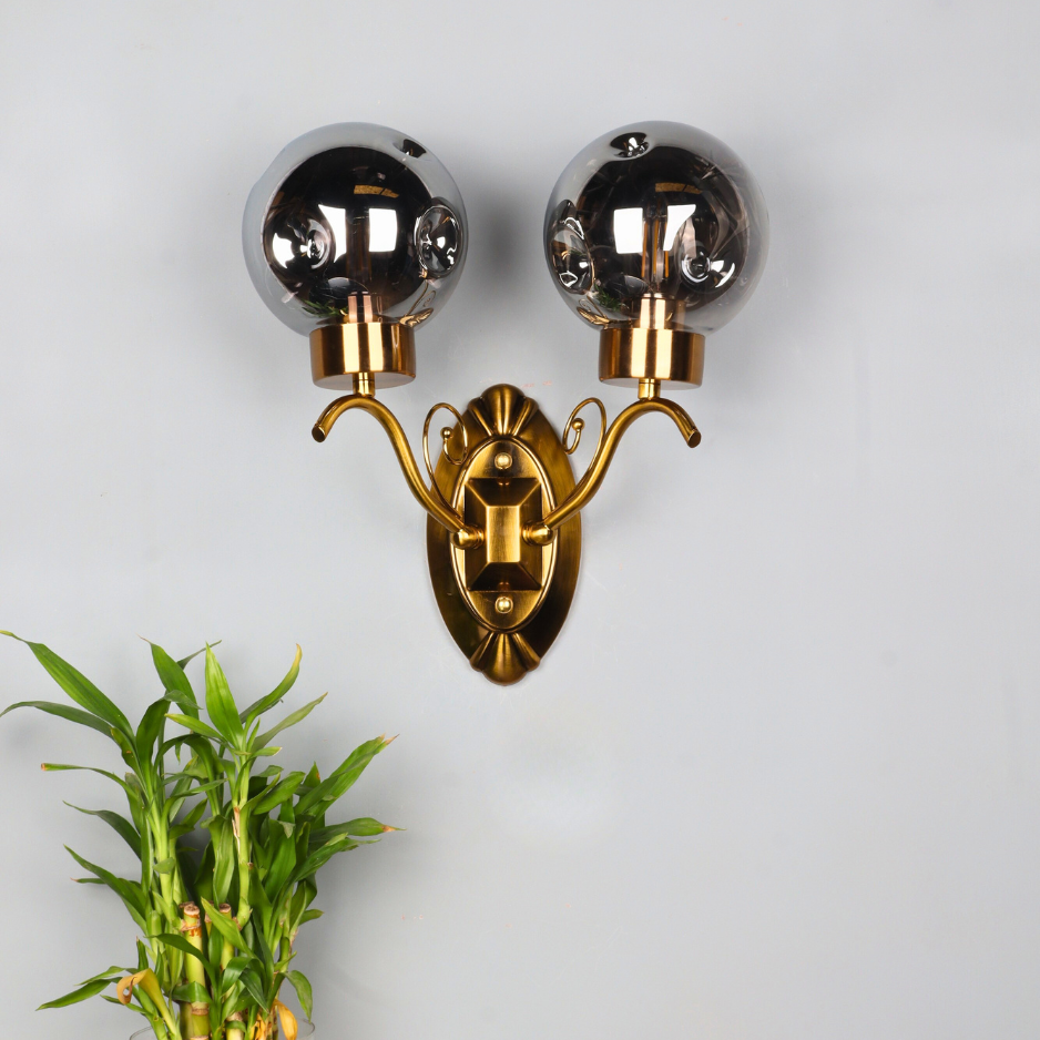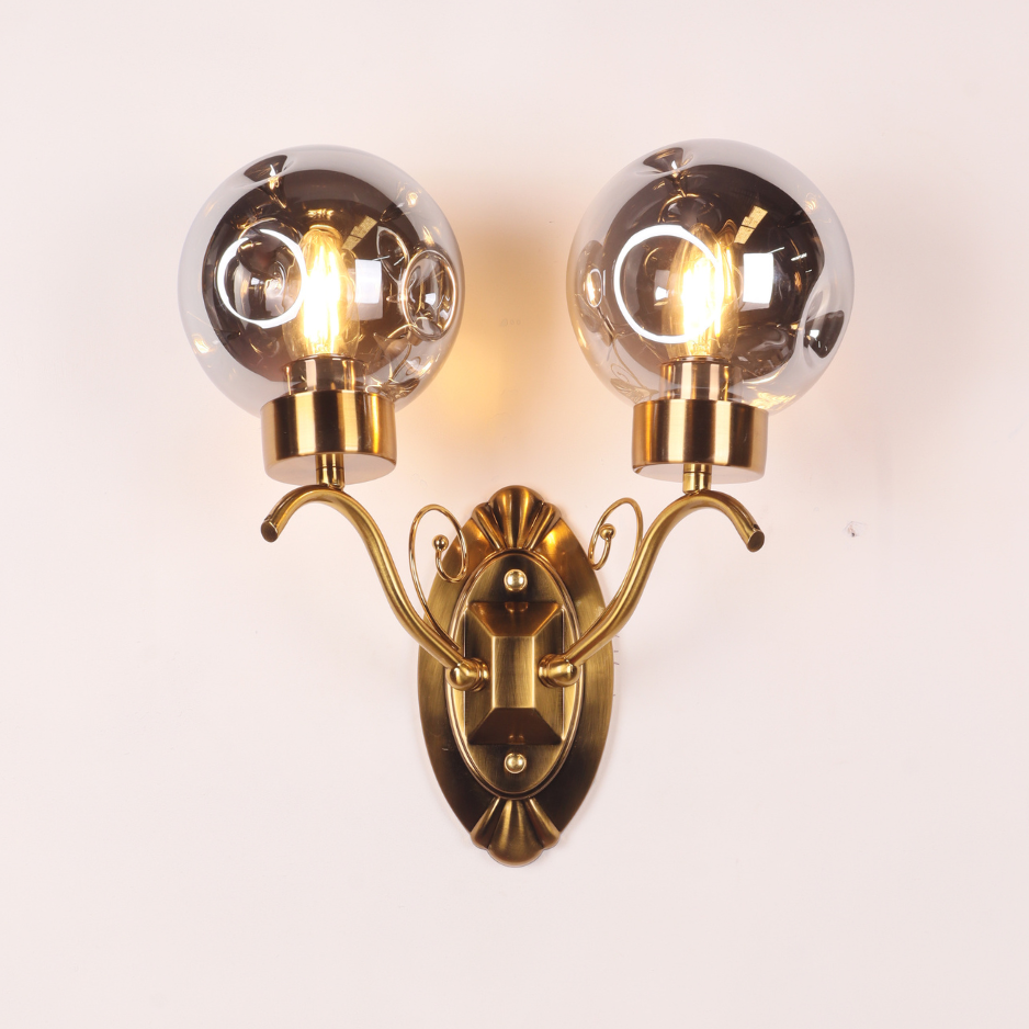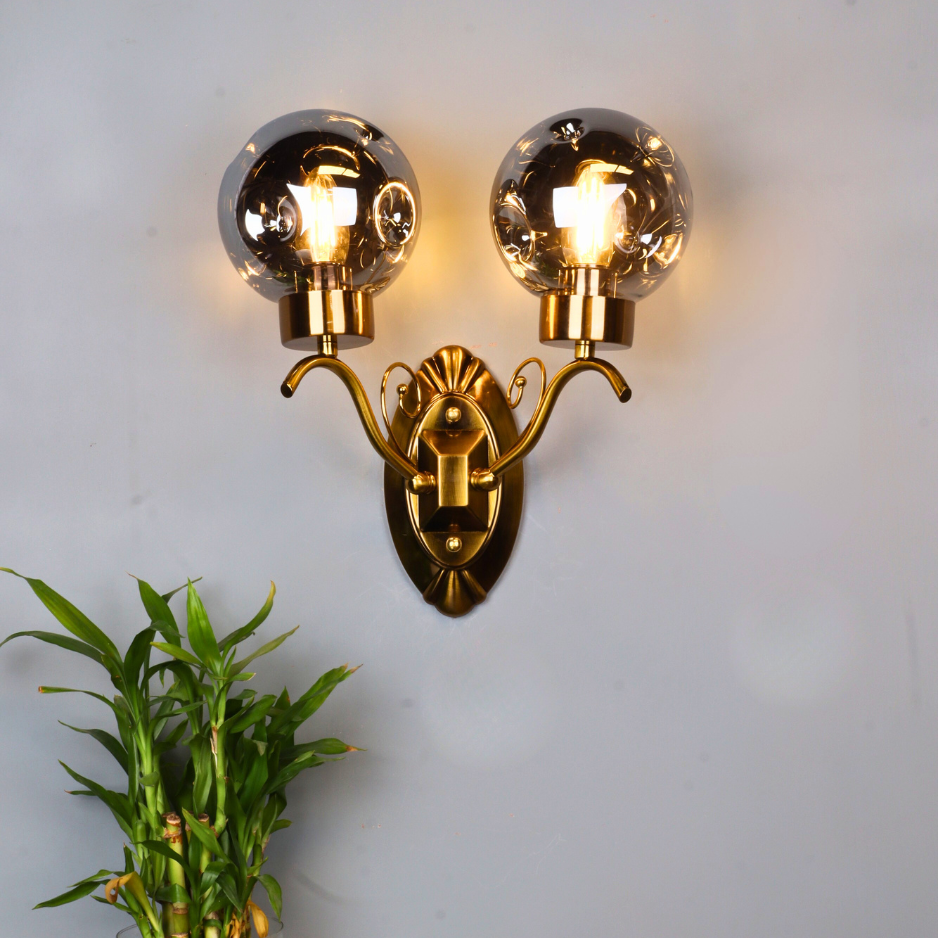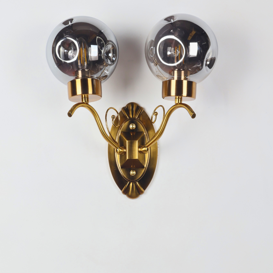 The Solare features a beautifully ornate brass-toned backplate and gracefully curved arms, reminiscent of classic design. Each arm supports a stunning smoked glass globe, which encases an exposed filament bulb (included). The smoked glass provides a soft, diffused light, casting a warm and inviting glow that transforms any room. Ideal for illuminating hallways, creating a welcoming atmosphere in entryways, or adding a touch of romance to bedrooms and living areas.